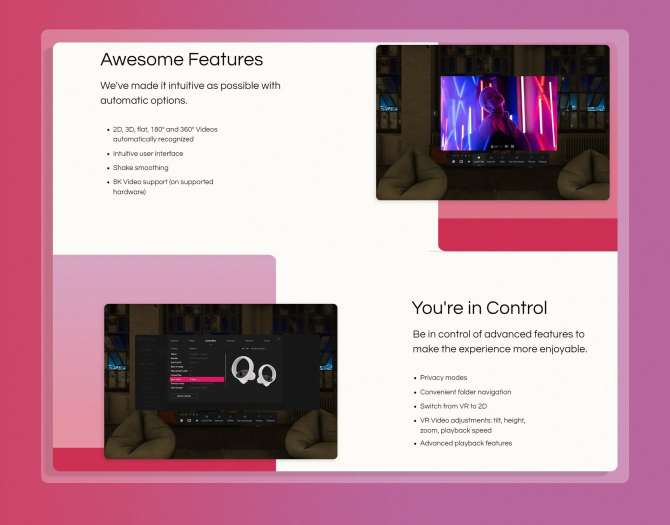 Создали с нуля видеоплеер для виртуальной реальности, который поддерживает 180º и 360º видео. Он легко интегрируется и обеспечивает высокое качество воспроизведения.