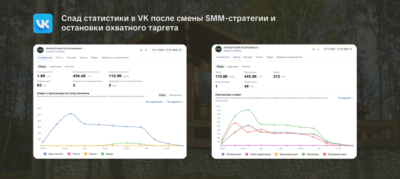 ▶️ Охватная механика работает только в связке «контент + таргет + системность». Стоит убрать любую составляющую, и накопленный эффект начинает рассеиваться. Пока мы наблюдаем за результатами новой SMM-стратегии, которой нужно время для разгона, и готовы вернуть охватный таргет в нужный момент.