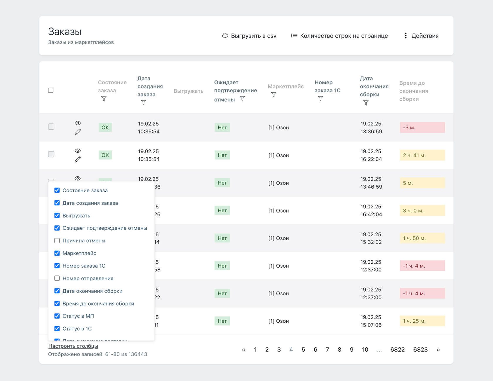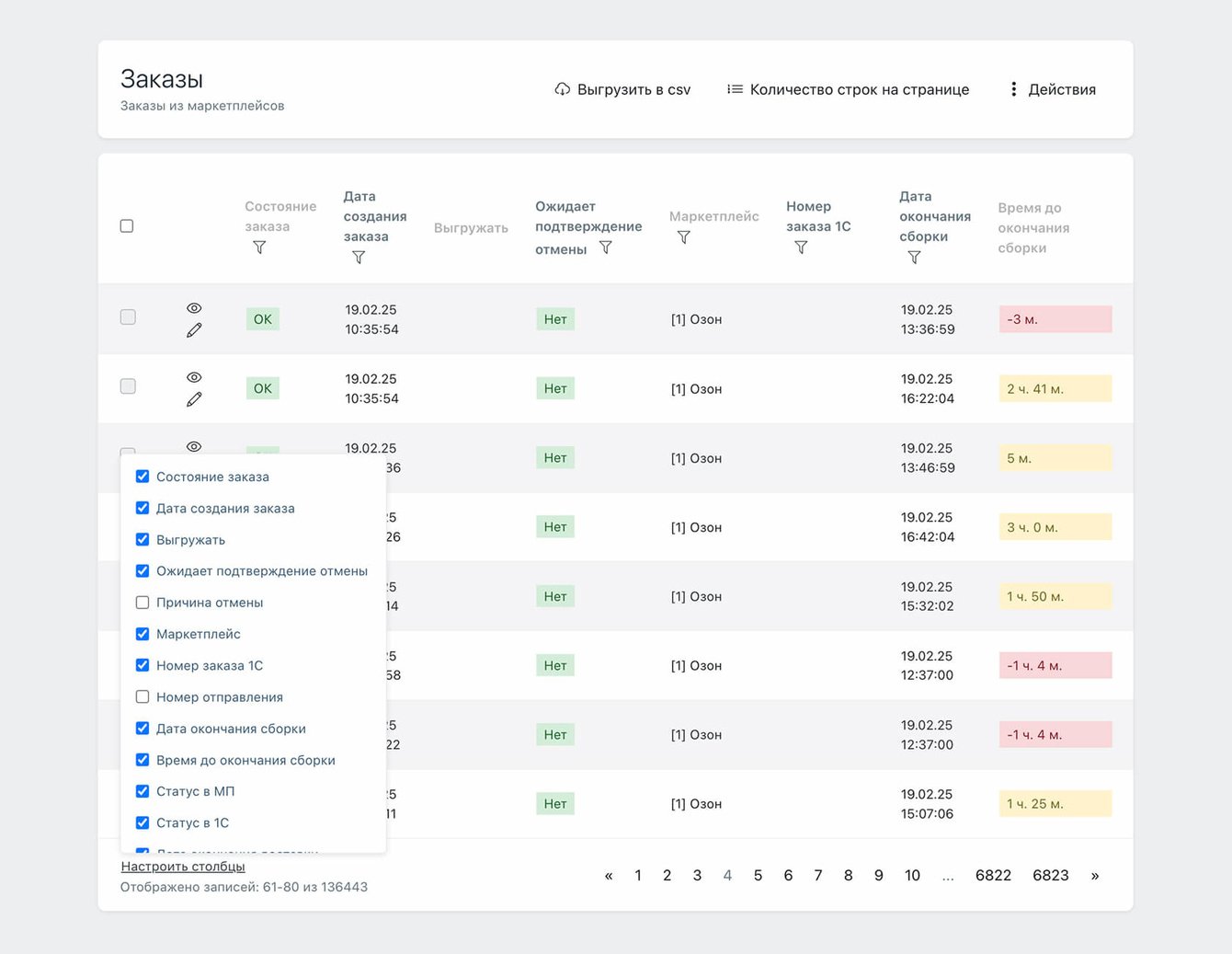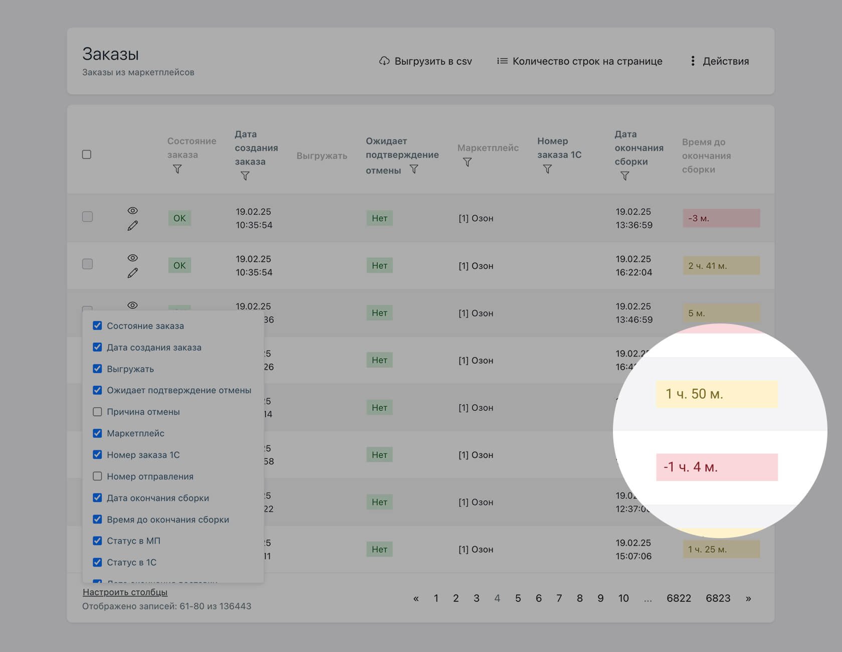 Магазину пропустить эту дату — как минимум, неприятно: в борьбе за клиента такие случаи сильно портят репутацию. Поэтому мы сделали в списке заказов на площадке обменов отдельную колонку, где выводится время до «даты окончания сборки» с обратным отсчетом и цветовой индикацией. Благодаря этому менеджерам «Орматека» будет максимально сложно пропустить такую дату и тем самым расстроить клиента на маркетплейсе.