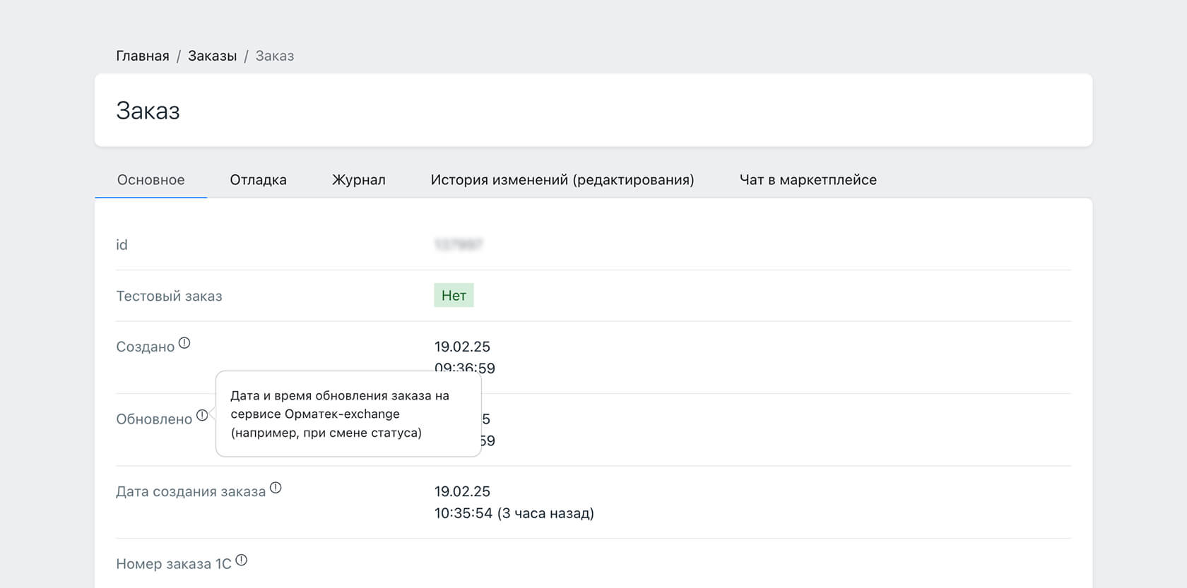1. Основное: ключевая информация с расшифровками каждого параметра — например, когда заказ был создан, изменен или обновлен.