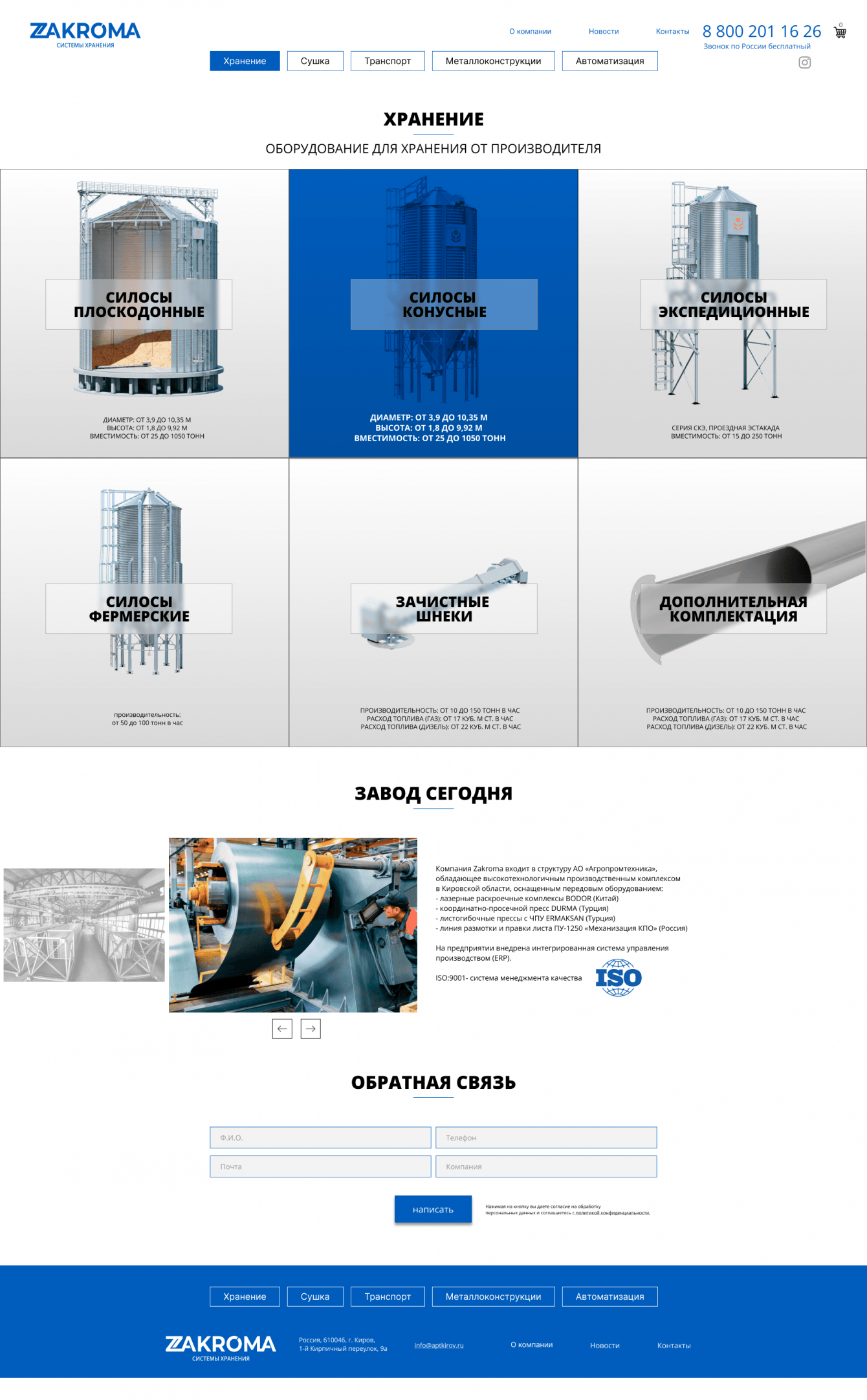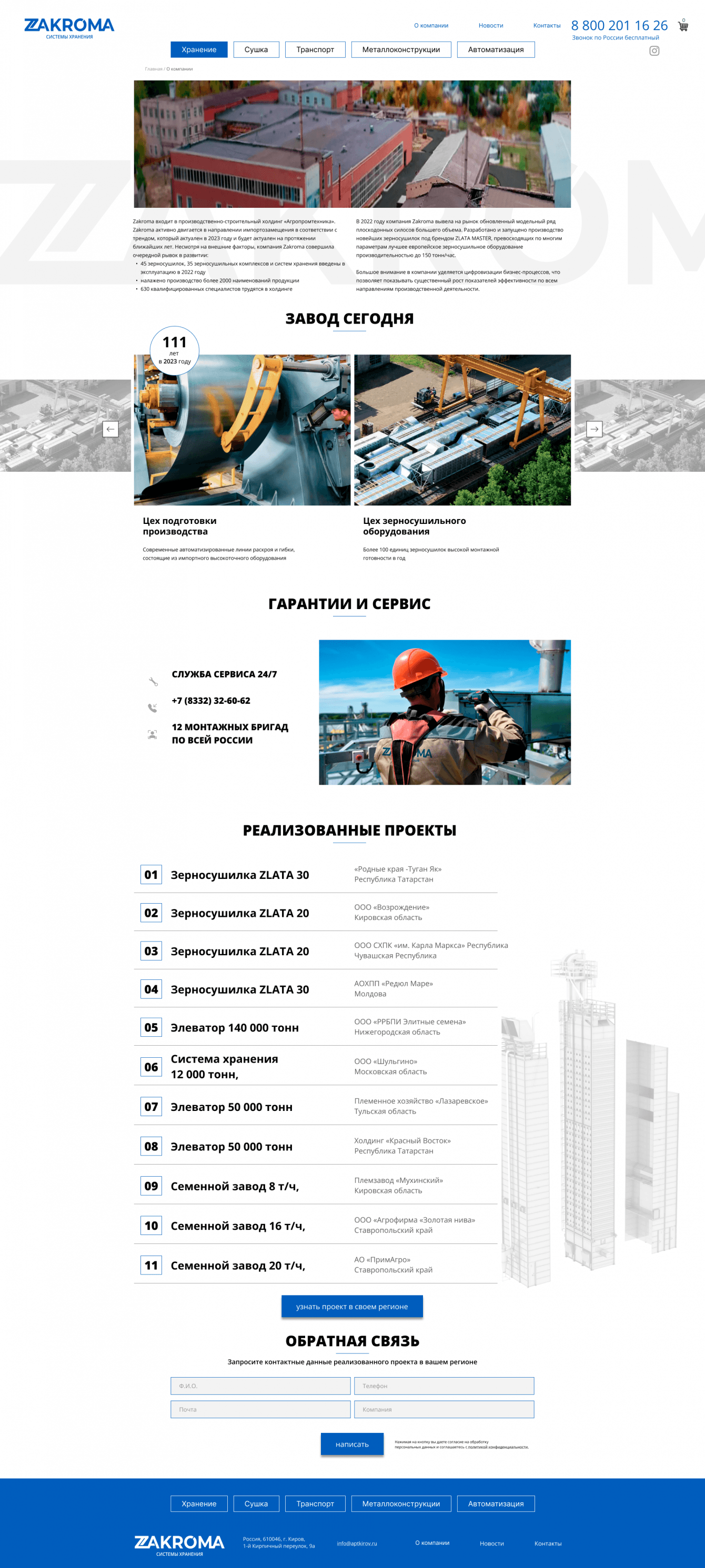 Создание отдельного направления завода по реализации единичного оборудования: зерносушилки, силосы, транспортное оборудование, металлоконструкции, ЗАВы. Создание рекламных кампаний на досках объявлений, в Яндексе и Вконтакте, seo-продвижение сайта.
