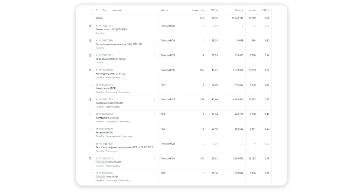 Мы не отчаялись и пошли от обратного — полностью выключили МК и собрали РСЯ, которые изначально были на первом объекте, параллельно решили протестировать новый инструмент Директа — Пакетные стратегии.