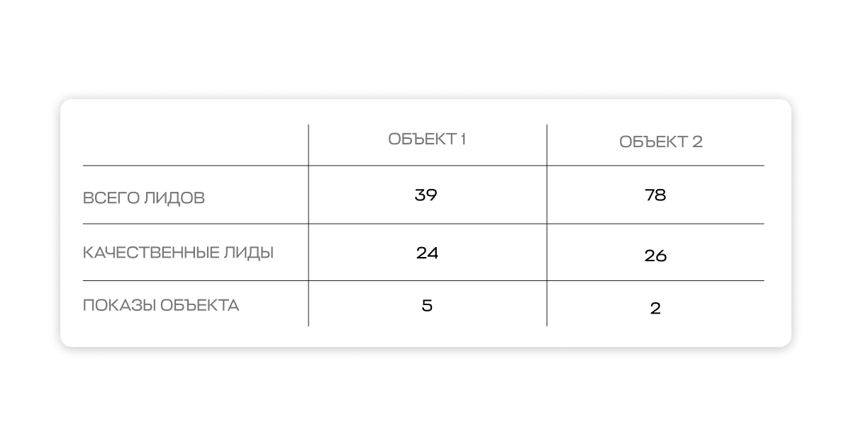 С двух во многом похожих проектов мы получали разное количество лидов, но продажи с них были примерно на одинаковом уровне, а финальное количество качественных лидов и ROMI устраивал всех.