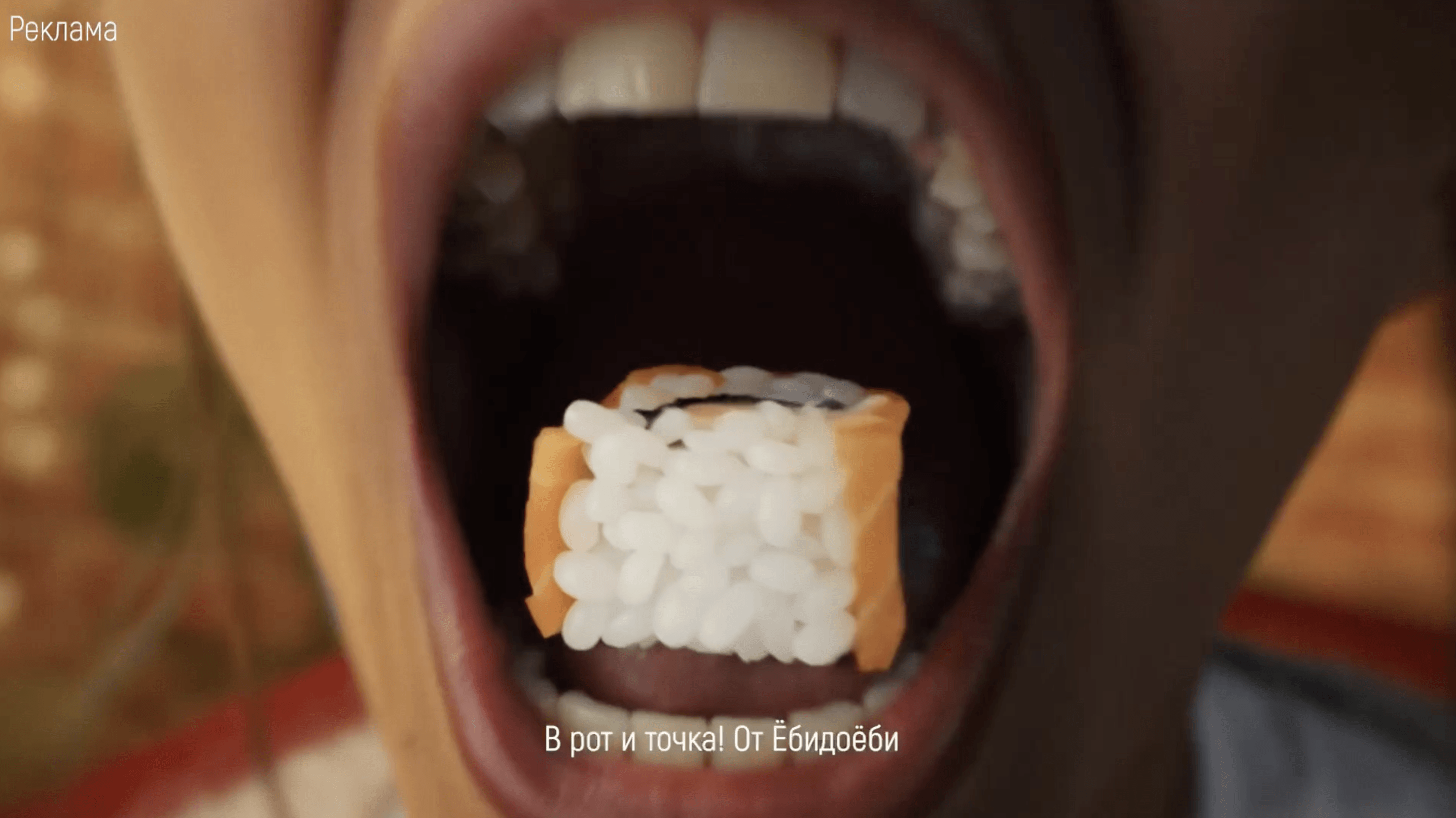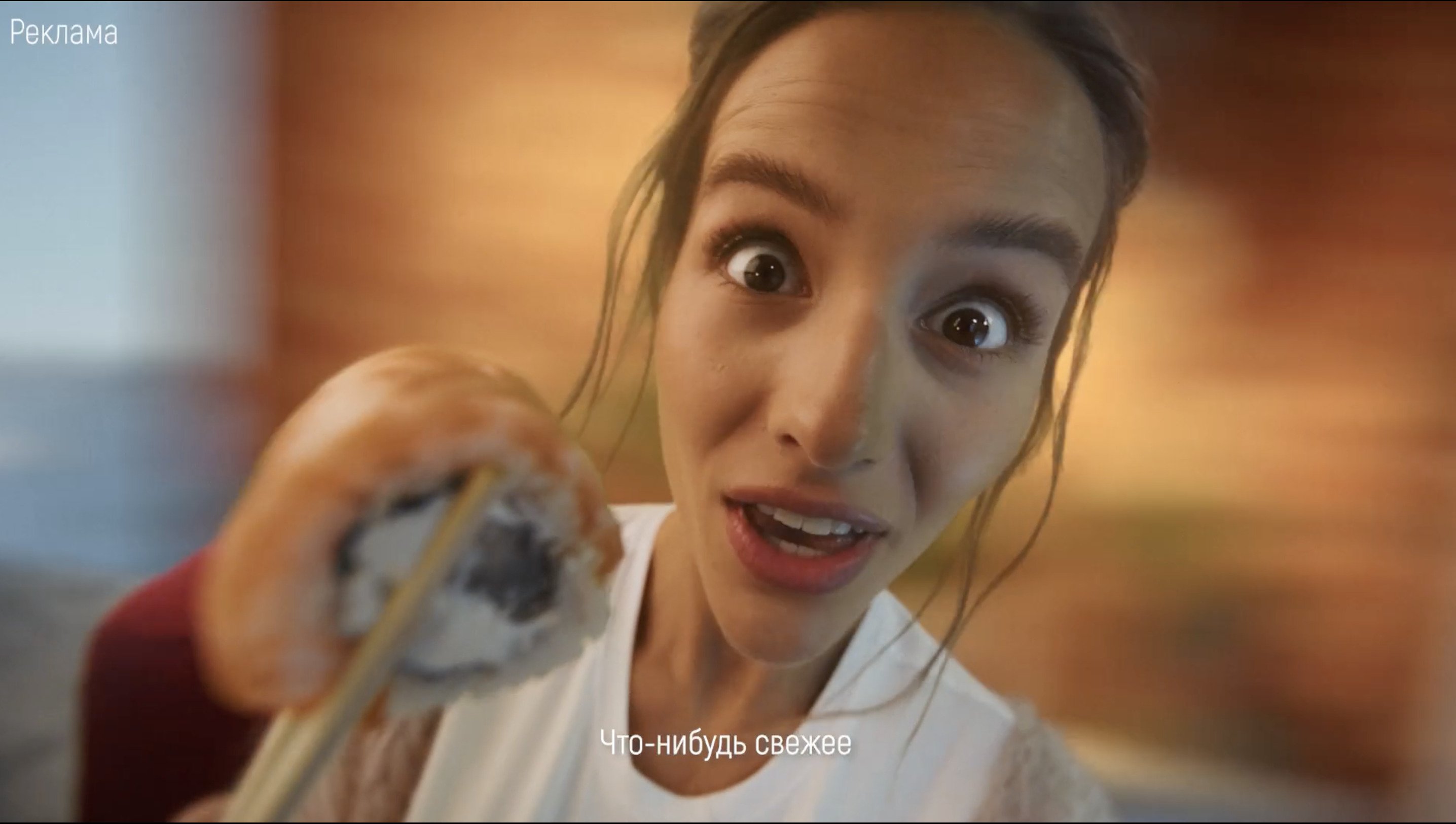В тексте звучат вкусовые характеристики роллов, которые настолько разнообразны, что понравятся многим, независимо от настроения в конкретный вечер. За первые 5 секунд название бренда звучит дважды, что также отвечает поставленной цели — быстро запомниться.