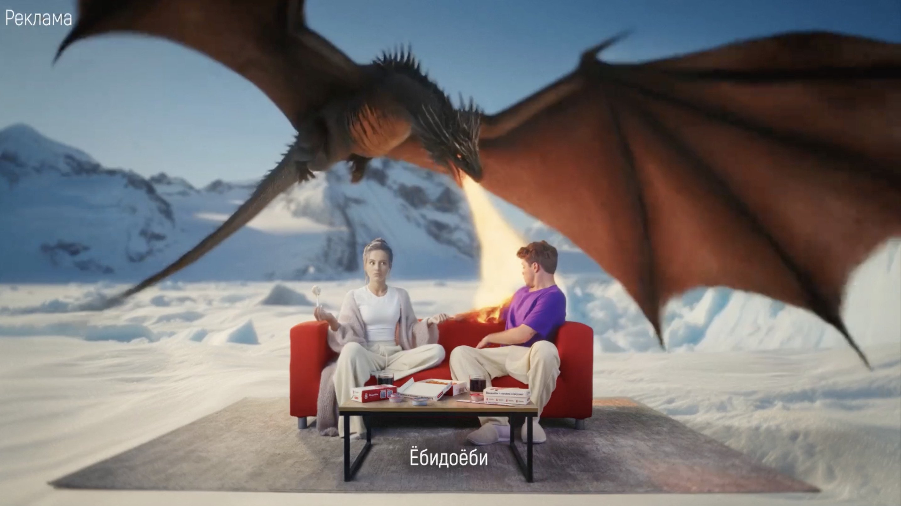 Для придания клиповости и динамичности ролику команда агентства создала узнаваемые образы из фильмов и сериалов, обработанные с помощью нейросети: «Сияние», «Сумерки», «Игра престолов». Отсылки к фильмам и аниме в том числе помогли воссоздать в ролике всем знакомую ситуацию: пятница, вечер, вы дождались доставку и погрузились в атмосферу любимой истории.