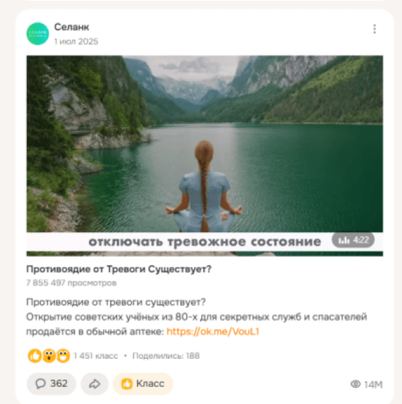 2. Находим цепляющий триггер, способный пробивать инфошум в медиа. Триггер заключён в рекламных объявлениях, ведущих на видео. И в первых 13 секундах самого видео.