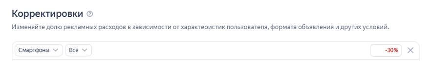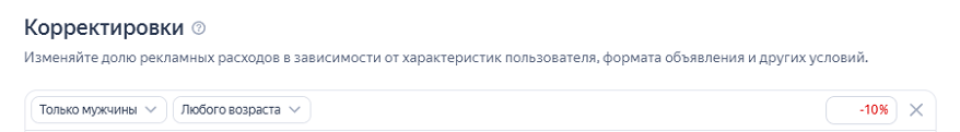 Ситуация требовала немедленного реагирования для снижения CPC, и в тот же день мы применили корректировки. Сперва отфильтровали мужчин (-10 %), затем применили корректировку «мобильные устройства» (-30 %). Меры позволили в моменте снизить стоимость клика до 40,46 рублей — на нее указывает стрелка зеленого цвета в таблице выше.