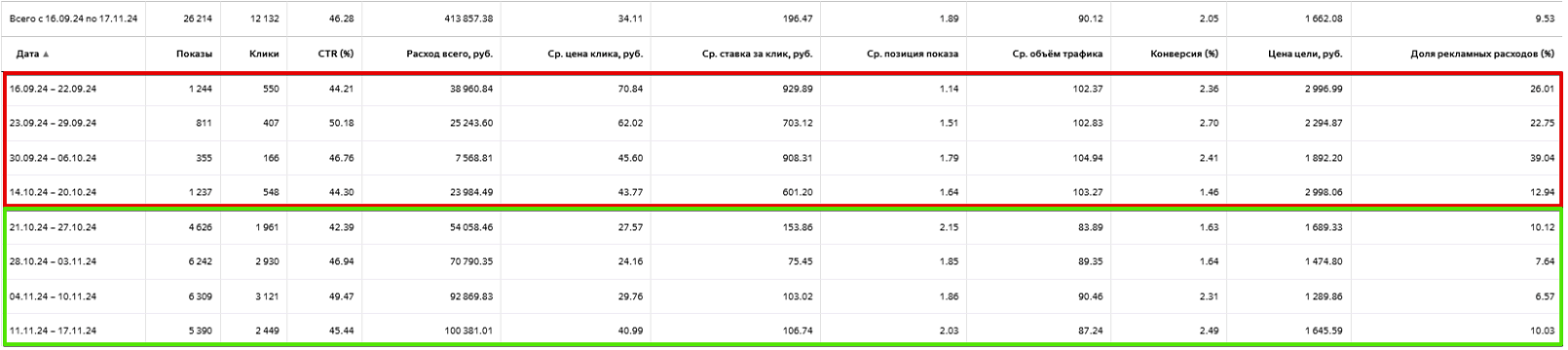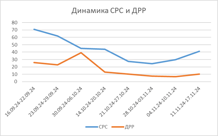 С 20 октября по 17 ноября, пока работала эта РК, показатели были такими: