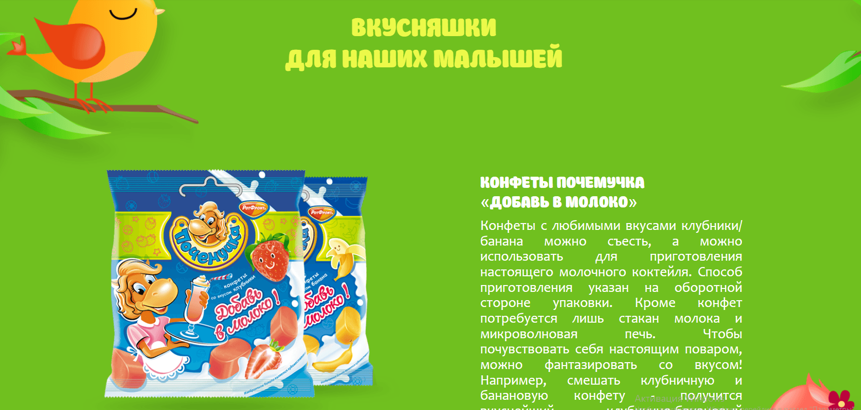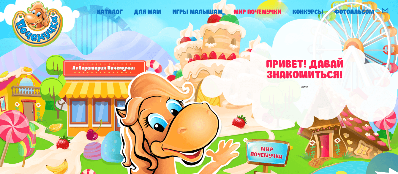 Создать сайт для бренда производителя "Рот-Фронт" под названием "Почемучка". Нужно было его сделать ярким и развлекательным для мам и их детей.