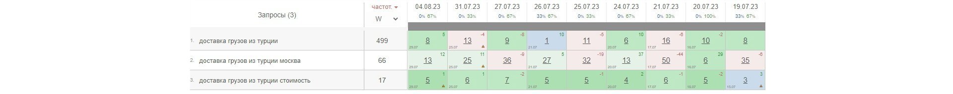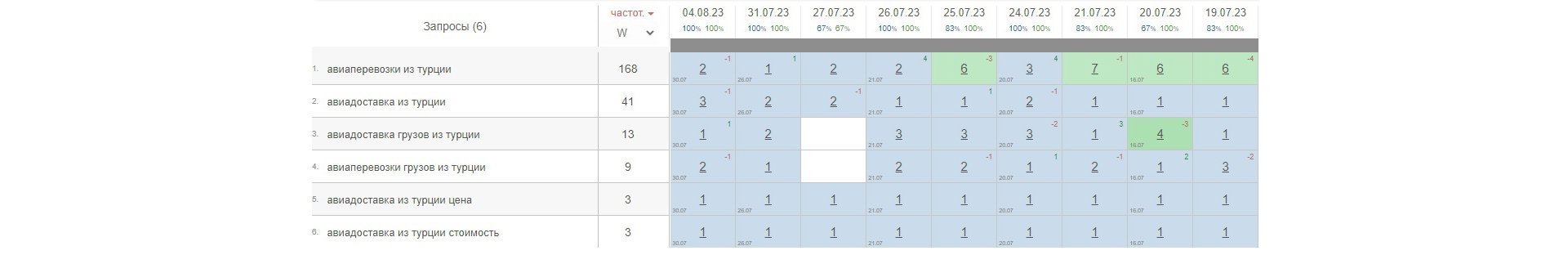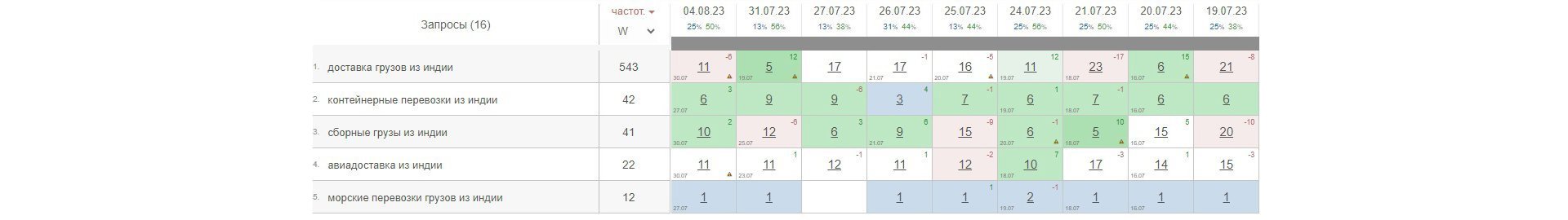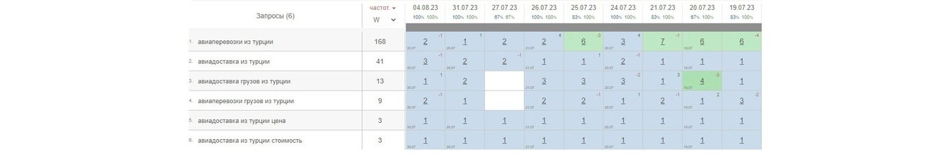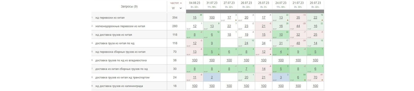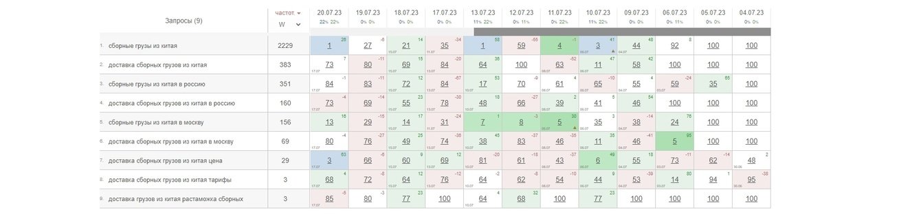 По сборным грузам из Китая сайт периодически выходил на первую страницу. Позиции пока были нестабильны, но рост уже был виден: