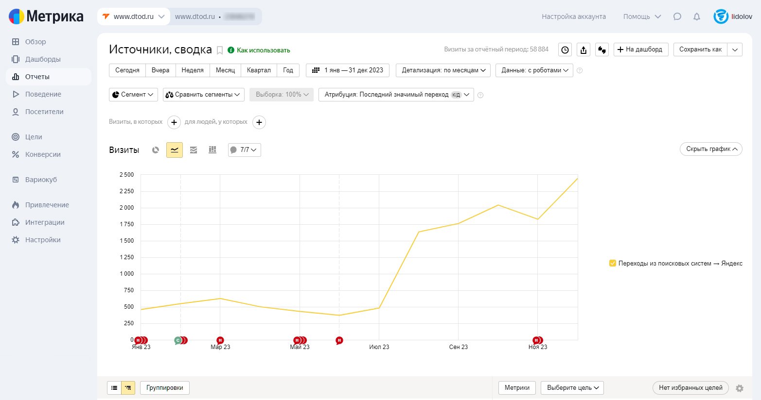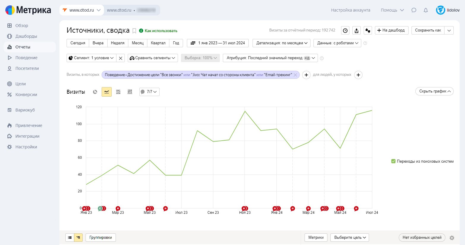 Спрос здесь зависит не только от работ на сайте, но и от внешней среды: курсов валют, ограничений, маршрутов, сезонности и общей ситуации на рынке. Поэтому в таких проектах нельзя смотреть на график трафика в отрыве от контекста.