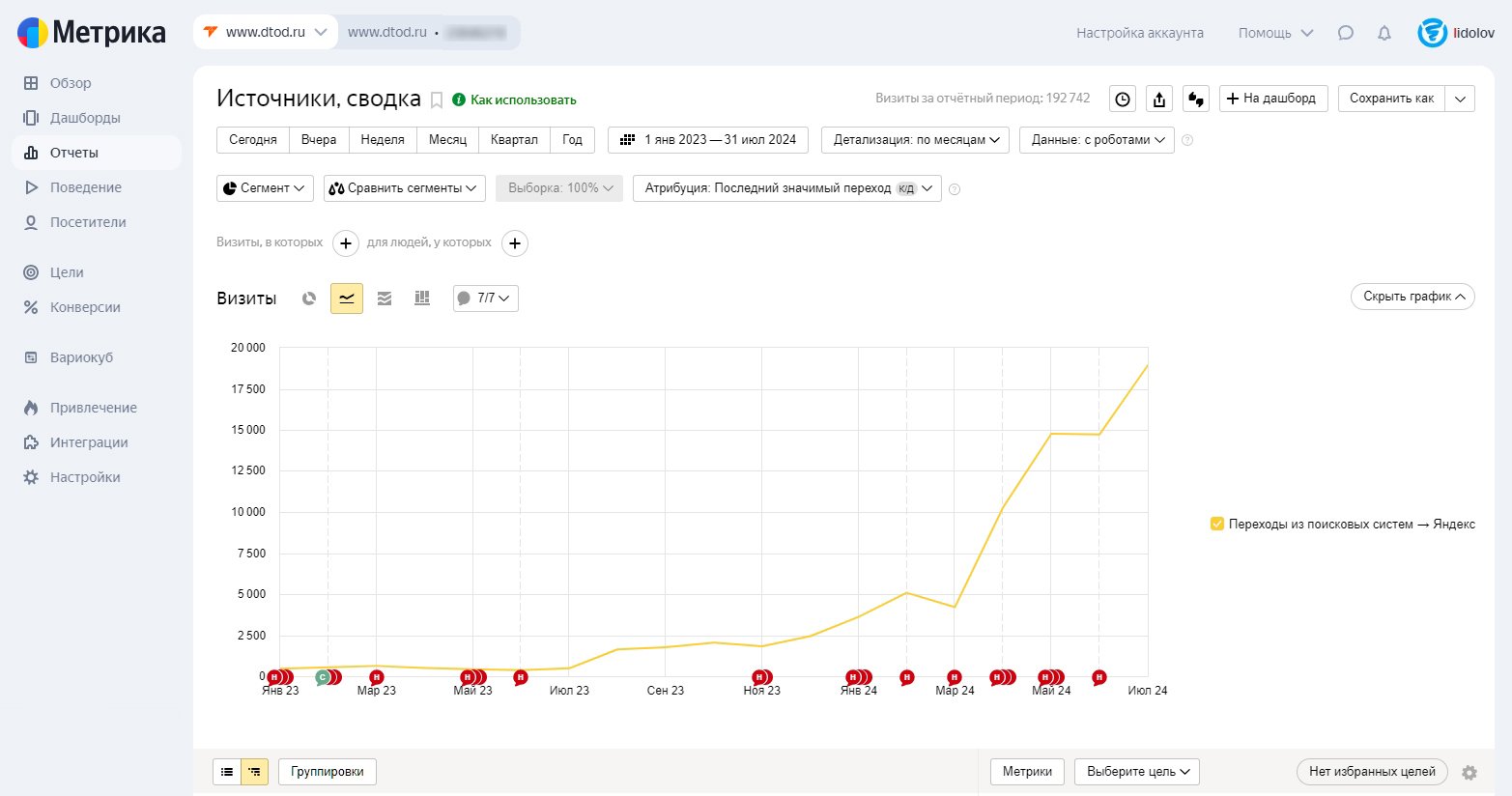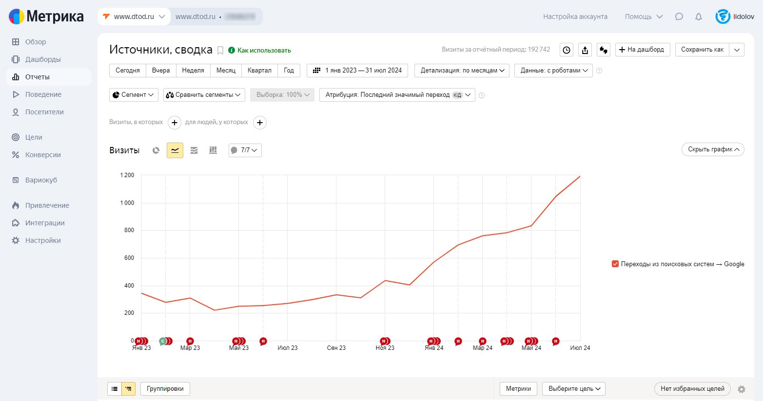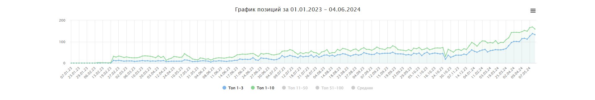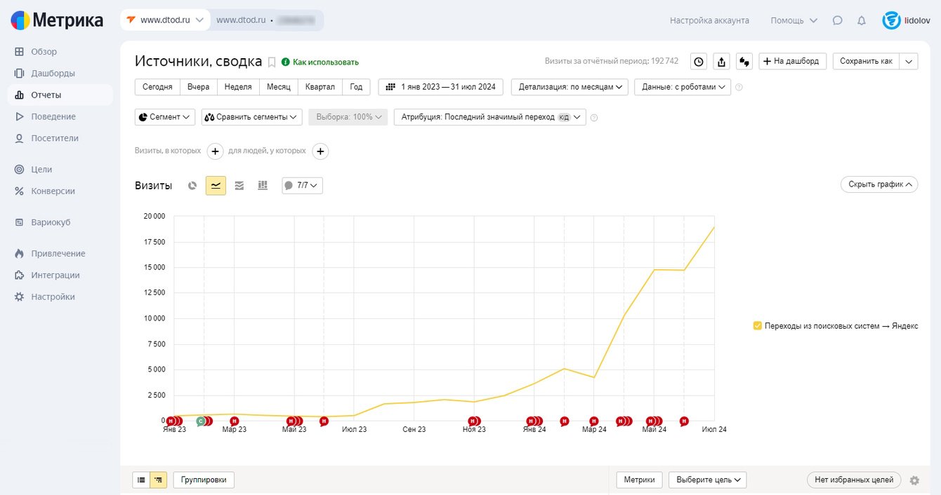 К июлю 2024 года сайт вышел на высокий органический трафик и удерживал позиции по ключевым направлениям.