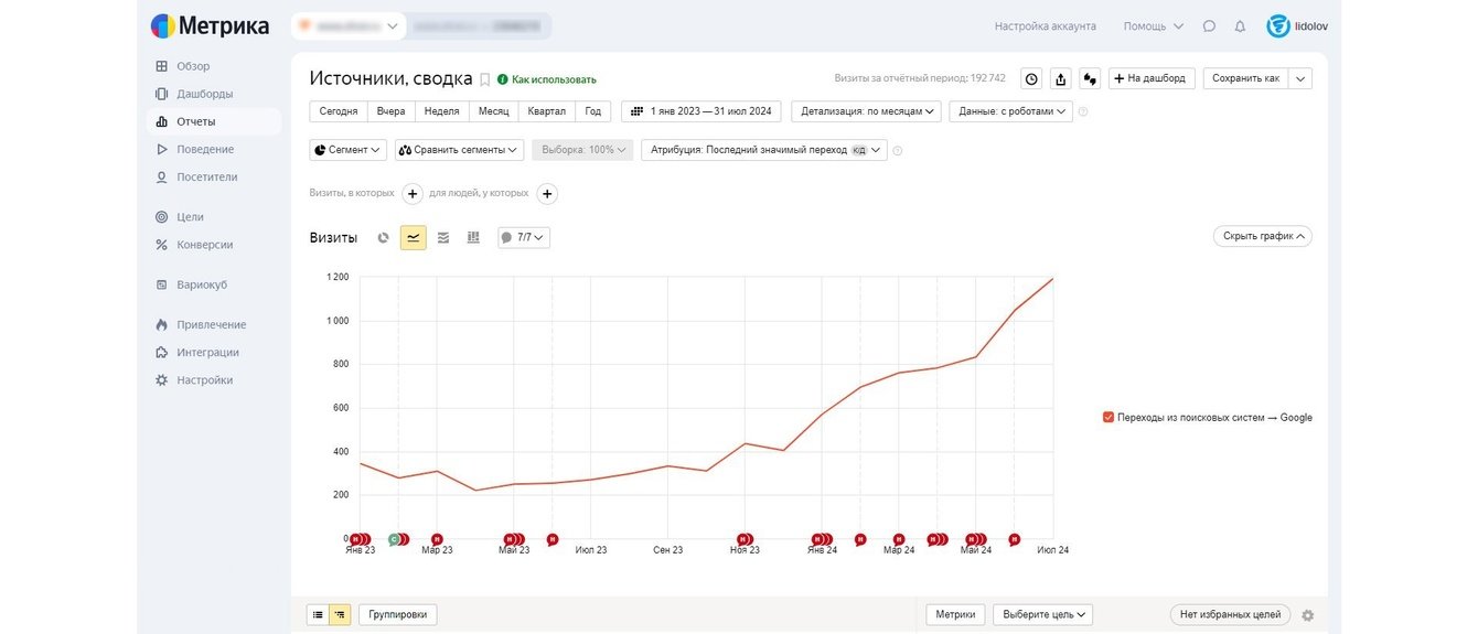 Проект NDA. Работаем с конца 2022 года. Новый клиент появился благодаря маркетологу, который порекомендовал нас при переходе от старого клиента к новому. Ниша международные грузоперевозки.