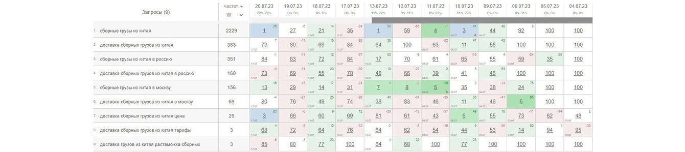 Периодически бываем на первой странице по сборным грузам из Китая, но результат пока не стабильный: