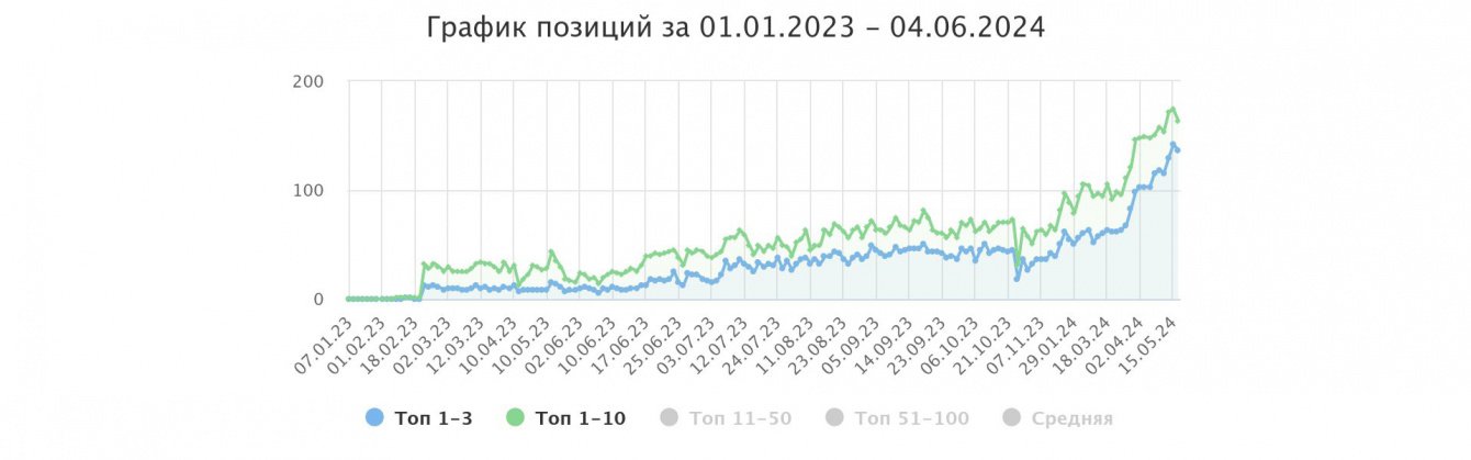 За прошедший год была проделана огромная работа по SEO-продвижению. Сайт получил множество новых блоков и новых страниц. Больше всего работали над релевантностью страниц относительно конкурентов. Посещаемость сайта выросла в 4-5 раз относительно января 2023 года: