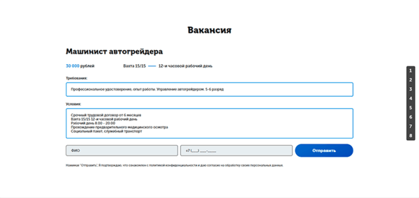 Структура лендинга по поиску соискателей: