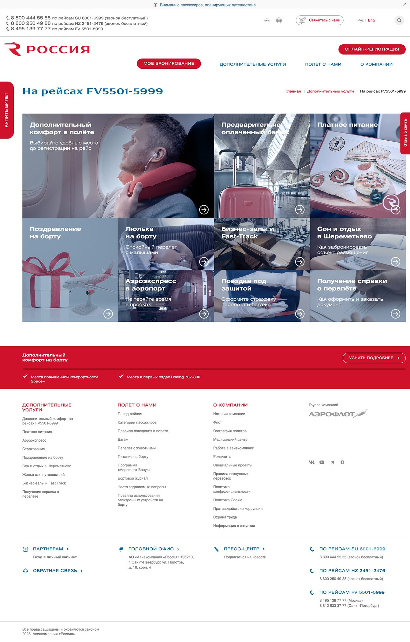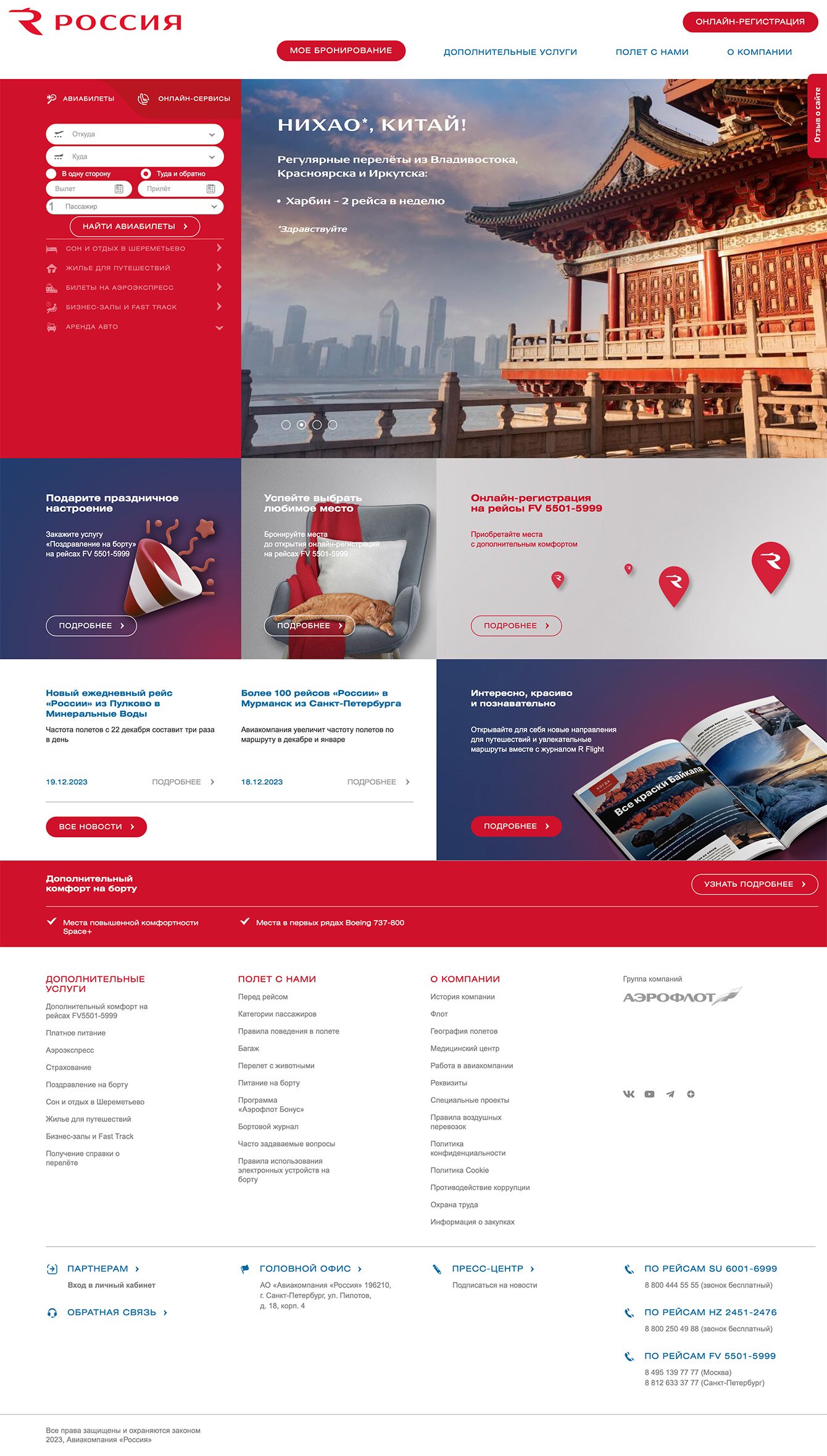 За 4 года сотрудничества на сайте Авикомпании Россия реализовано огромное число функциональных возможностей, включая онлайн-бронирование и регистрацию, заказ питания, карту маршрутов, различные интеграции с авиационными IT-системами и многое другое.