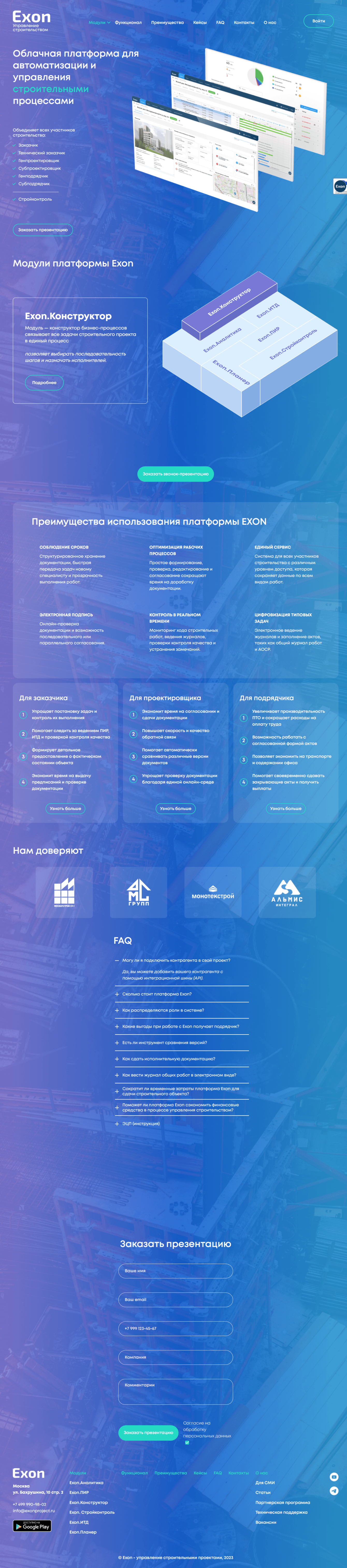 Exon — облачная платформа для автоматизации и управления строительными процессами.