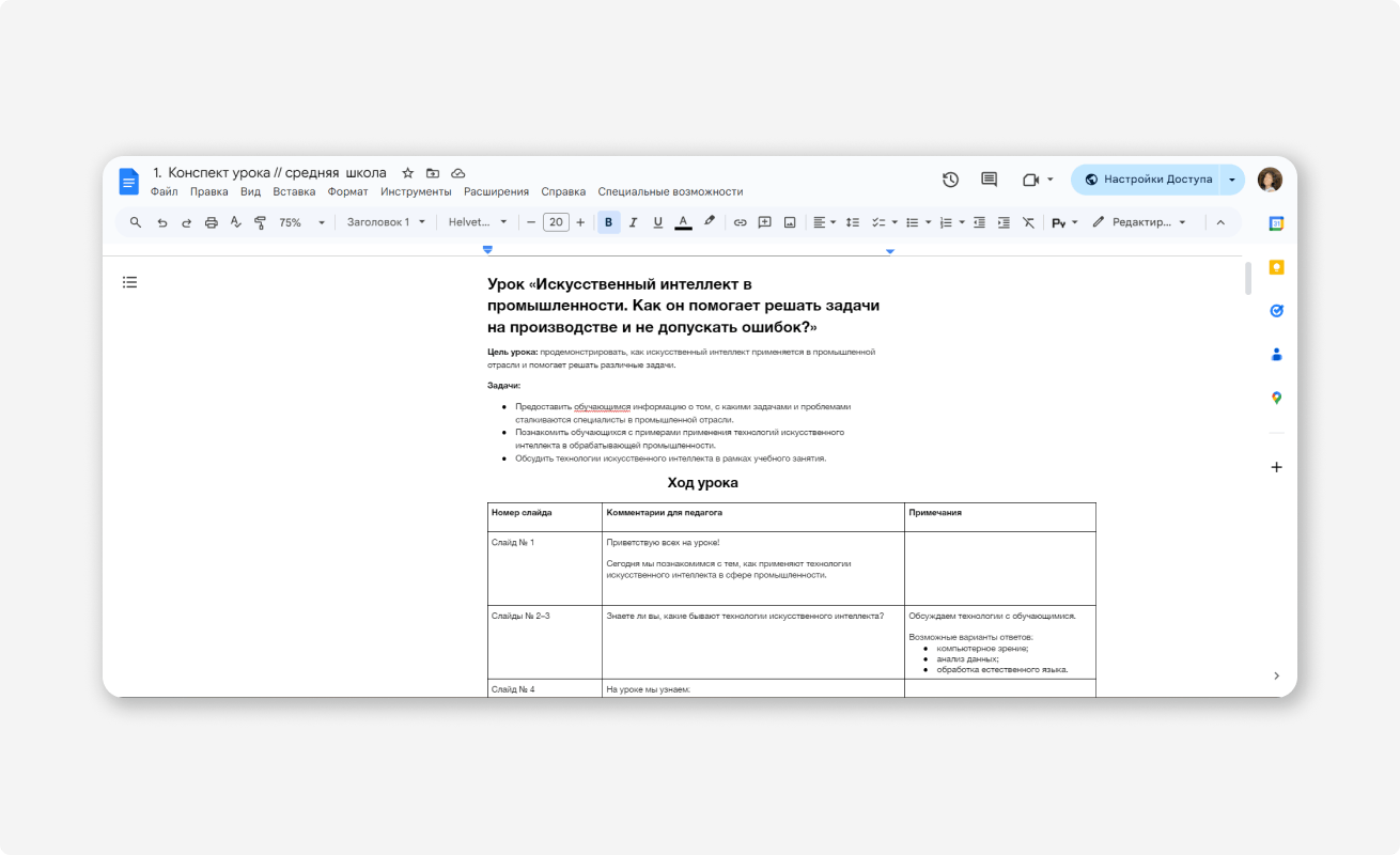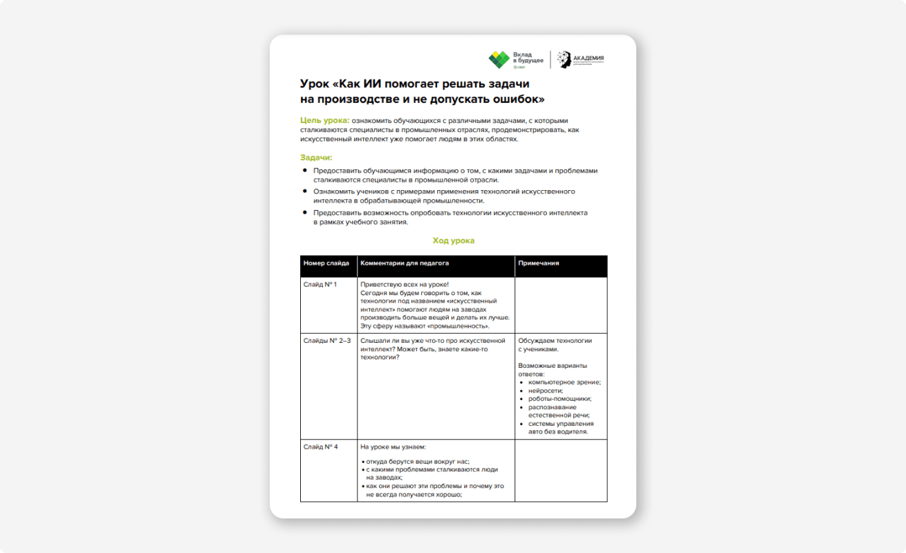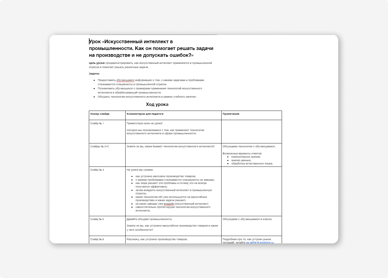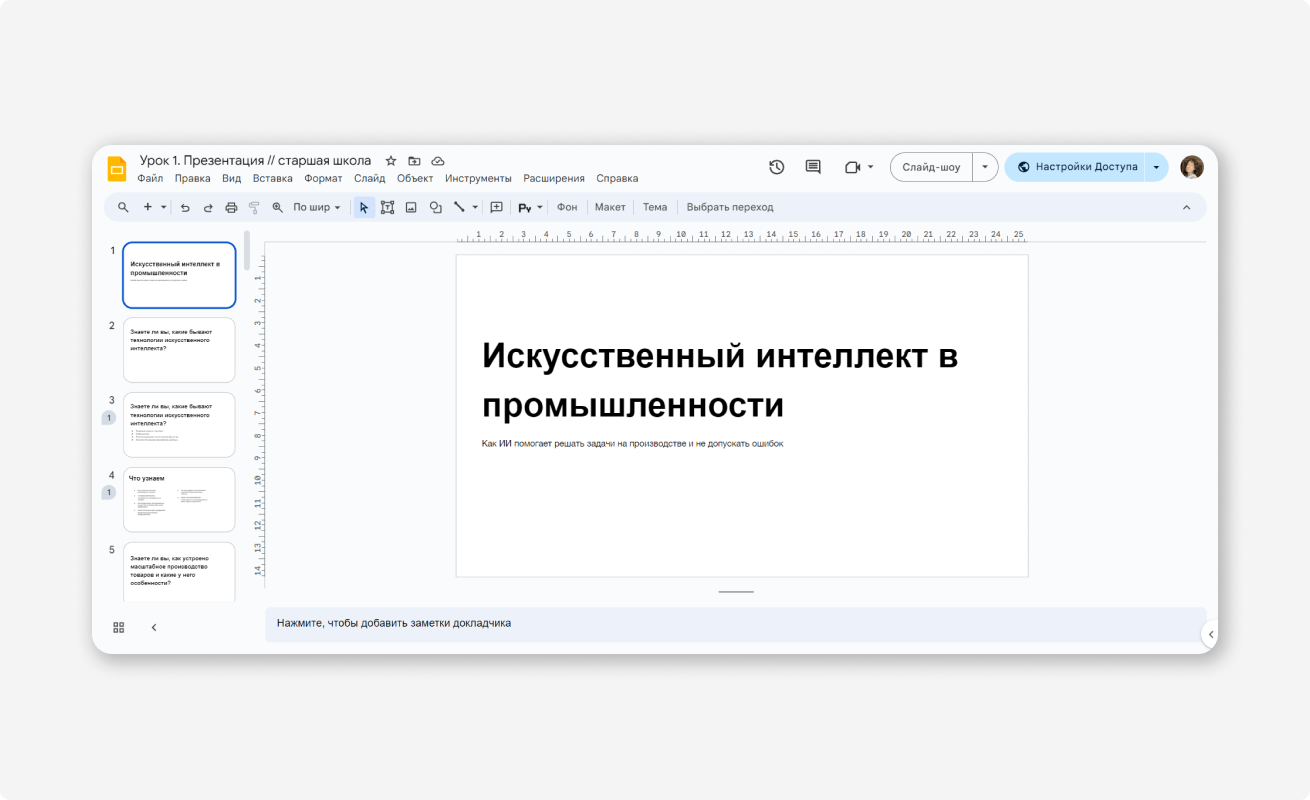 ↑ Презентация для урока про ИИ в обрабатывающей промышленности после дизайна