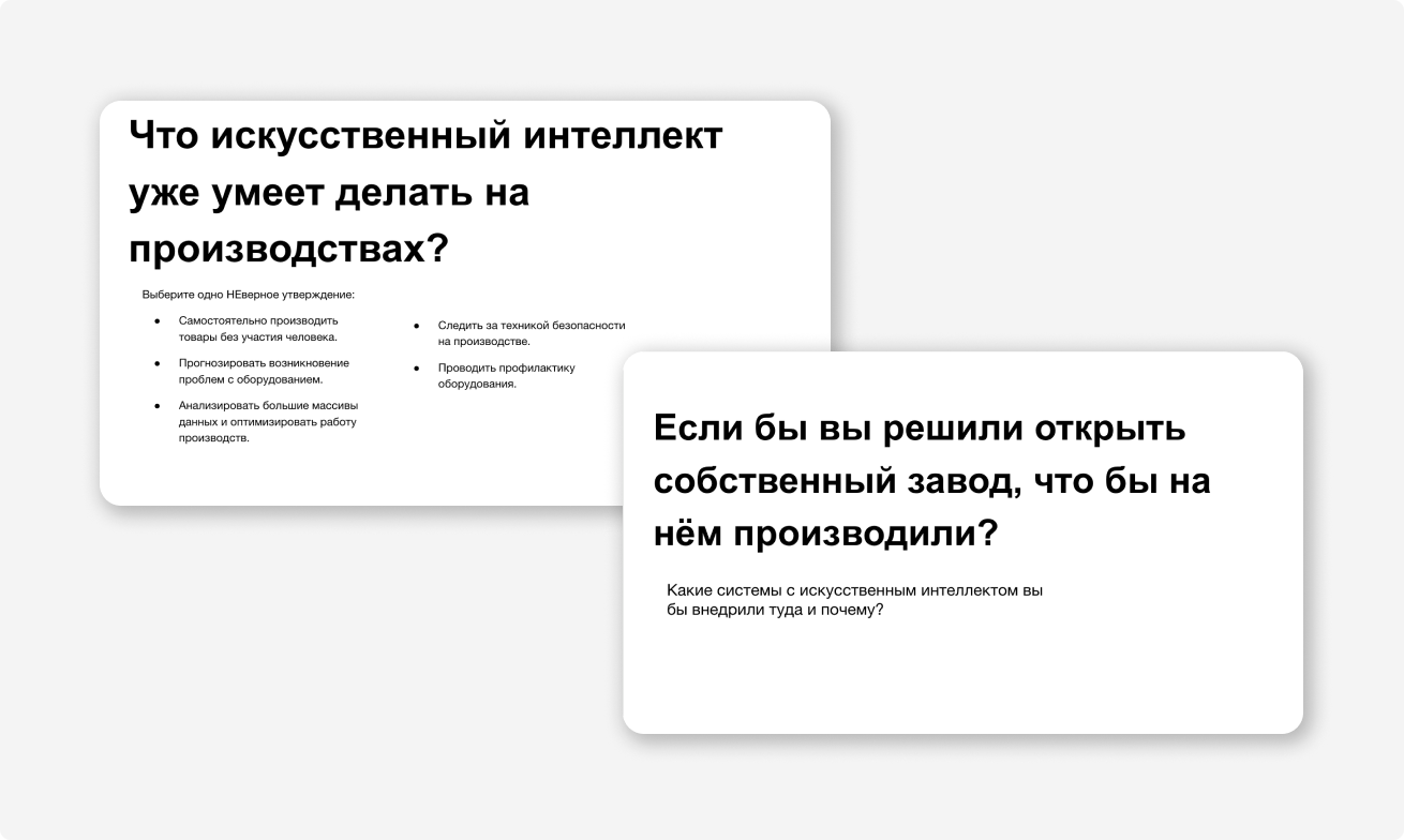 ↑ Вопросы из квиза по теме ИИ в промышленности