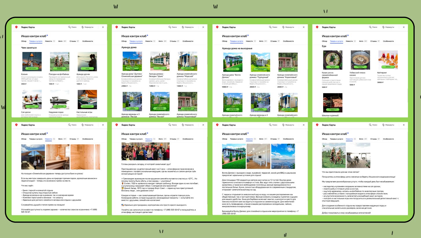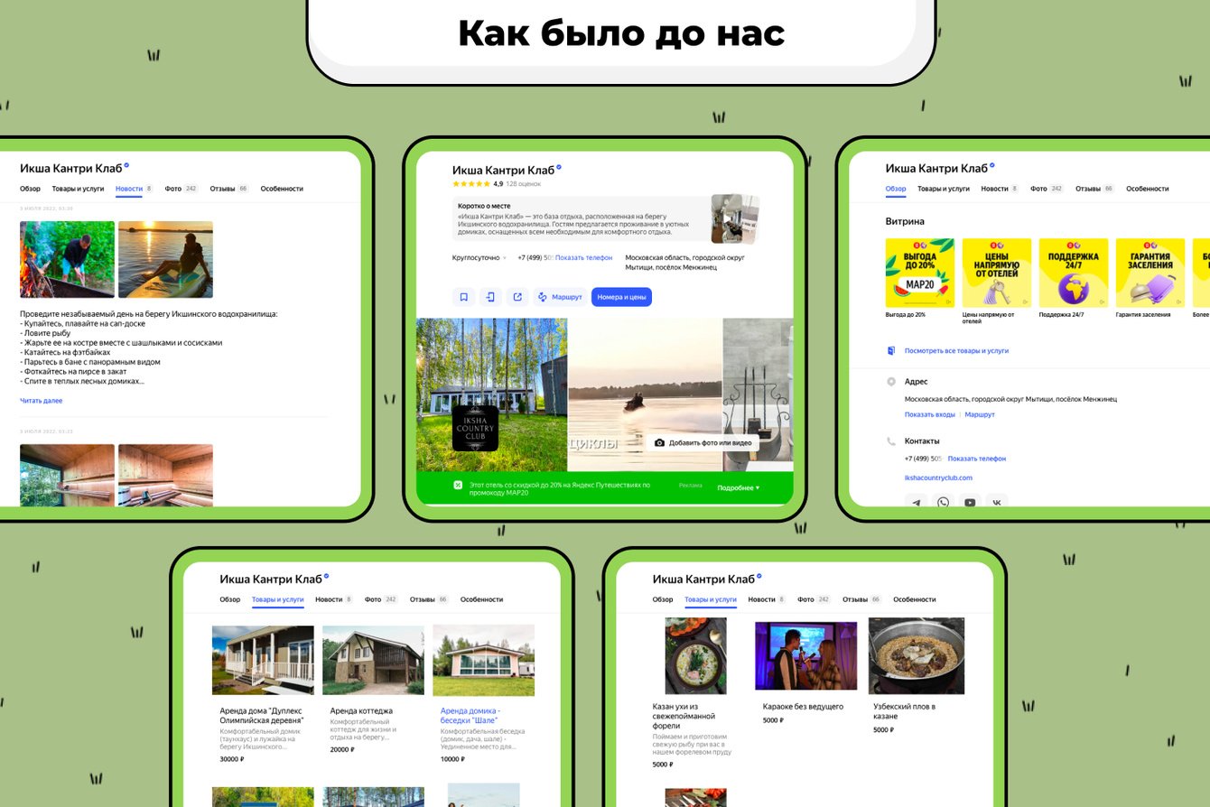 Мы сфокусировались на актуализации информации о базе отдыха в Яндекс.Картах и создании понятной визуальной структуры.