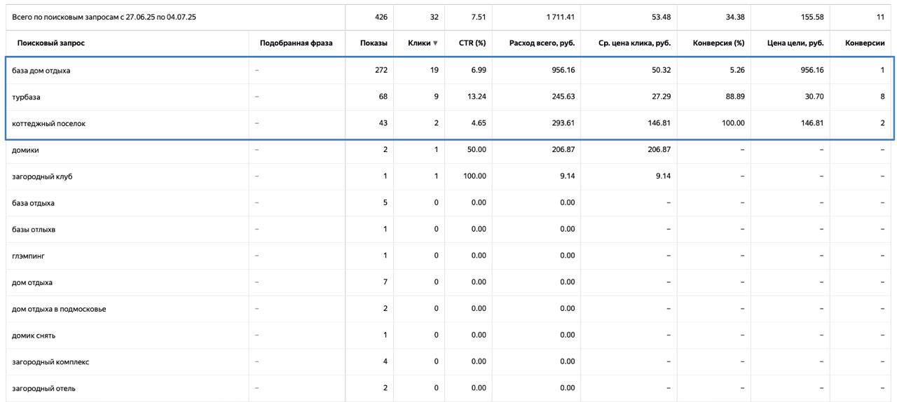 У нас не было возможности отследить конверсии по сервису Яндекс Путешествия, поэтому нужны были дополнительные данные для анализа, чтобы сделать итоговый вывод, какая рекламная кампания принесла больше заявок.