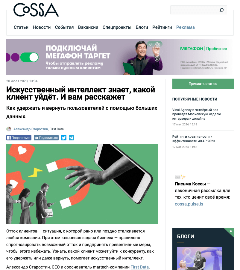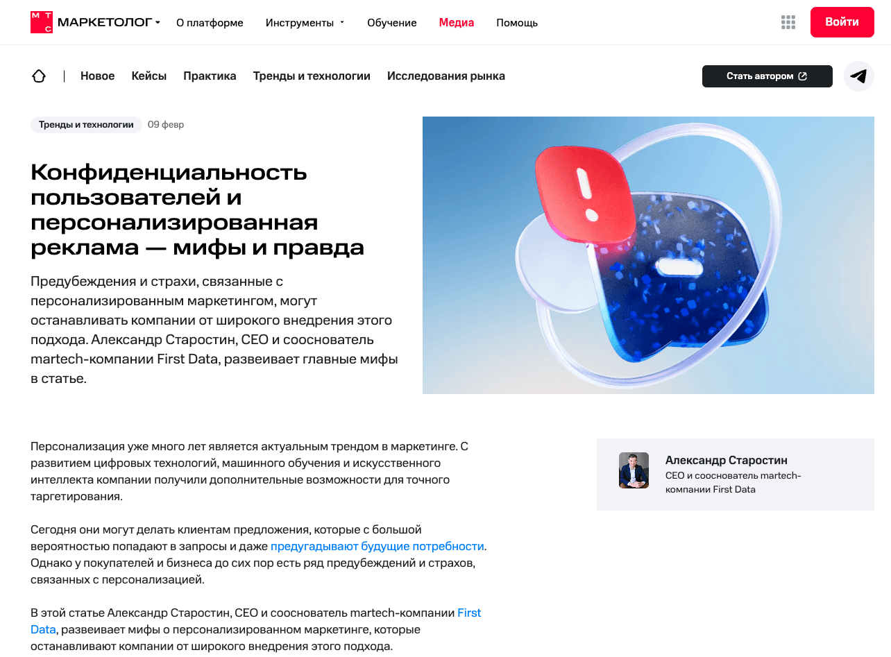 Написание авторских статей для бизнес и маркетинговых СМИ.