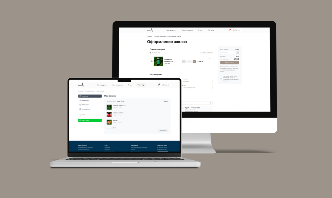 - Подготовка удобного сайта с корзиной и личным кабинетом для бренда витаминно-минеральных комплексов.