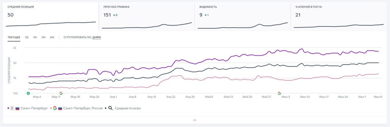 Практически сразу получили промежуточный результат в виде роста позиций: