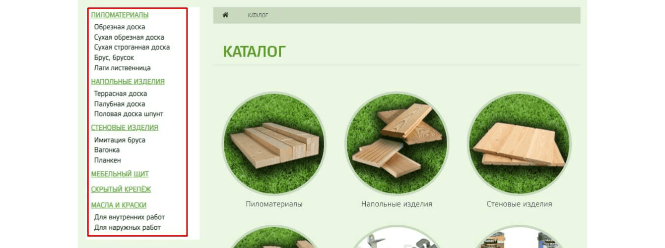 В каталоге заказчика на посадочных страницах насчитывалось не более 10 карточек товара. На основе прайс-листа, взятого с сайта, мы увеличили их количество — например, на странице «Имитация бруса» с 2 карточек до более чем 80.