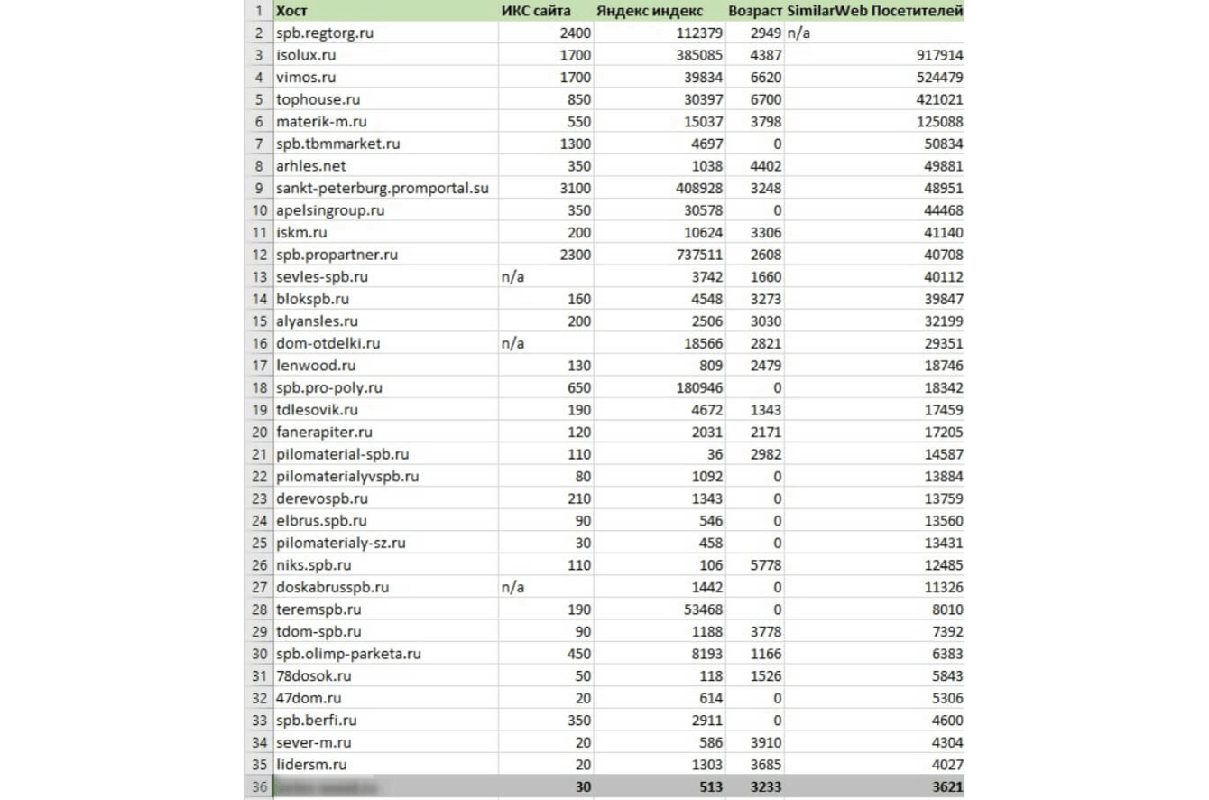 Над ассортиментом работали с учетом того, что на ранжирование влияет практически каждая его характеристика — число товаров, наличие описаний и цен, структурированность описаний и пр. Анализ структуры наполнения на сайтах (доменах) конкурентов в топ-20 выдачи показал четкую связь между посещаемостью ресурса и числом его страниц в индексе (т. е. объемом товарного ассортимента):