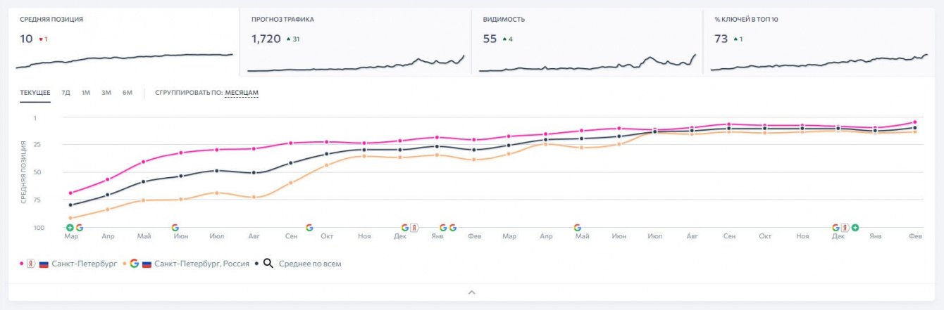 Практически сразу получили промежуточный результат в виде роста позиций: