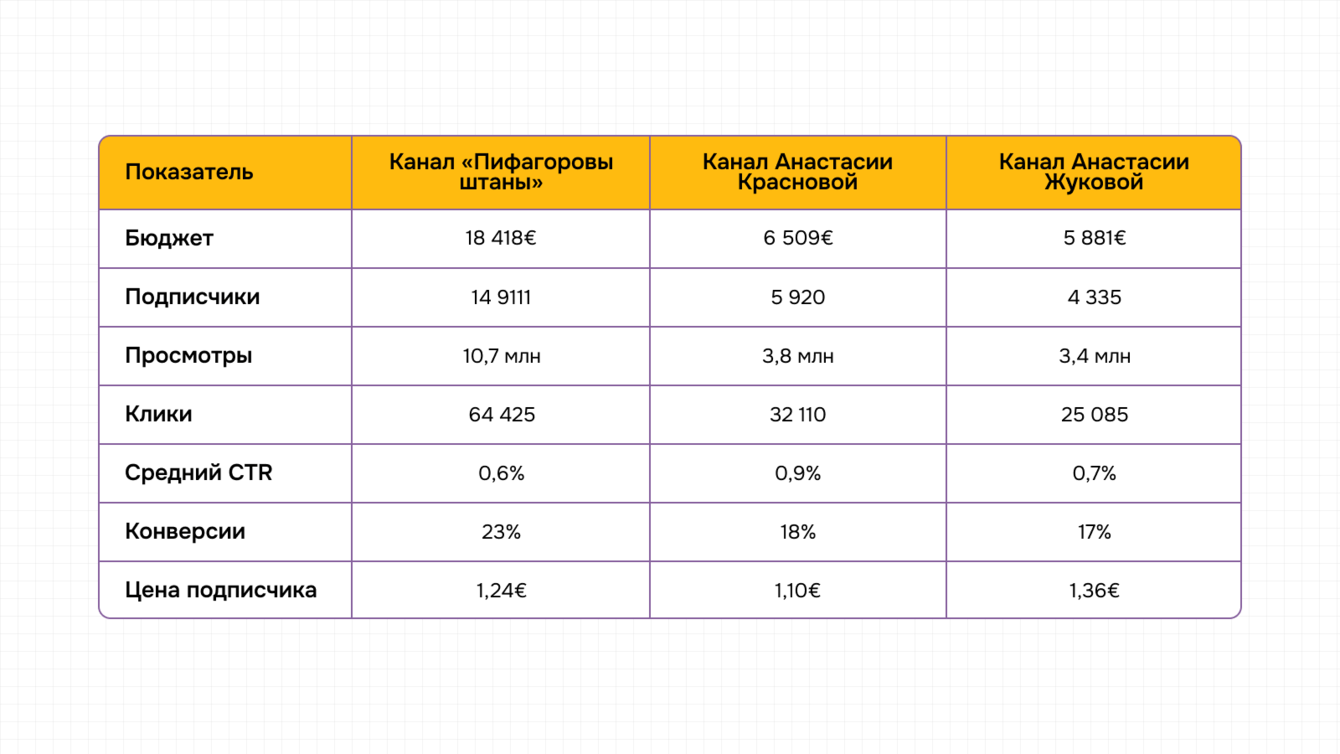 За два года работы (с марта 2024 по февраль 2026) мы доказали, что системный подход позволяет привлекать дешевых подписчиков даже в очень конкурентной сфере. Если средняя цена подписки в нише образования около 1,7 евро, то нам удалось удержать средний показатель на уровне 1 евро.
