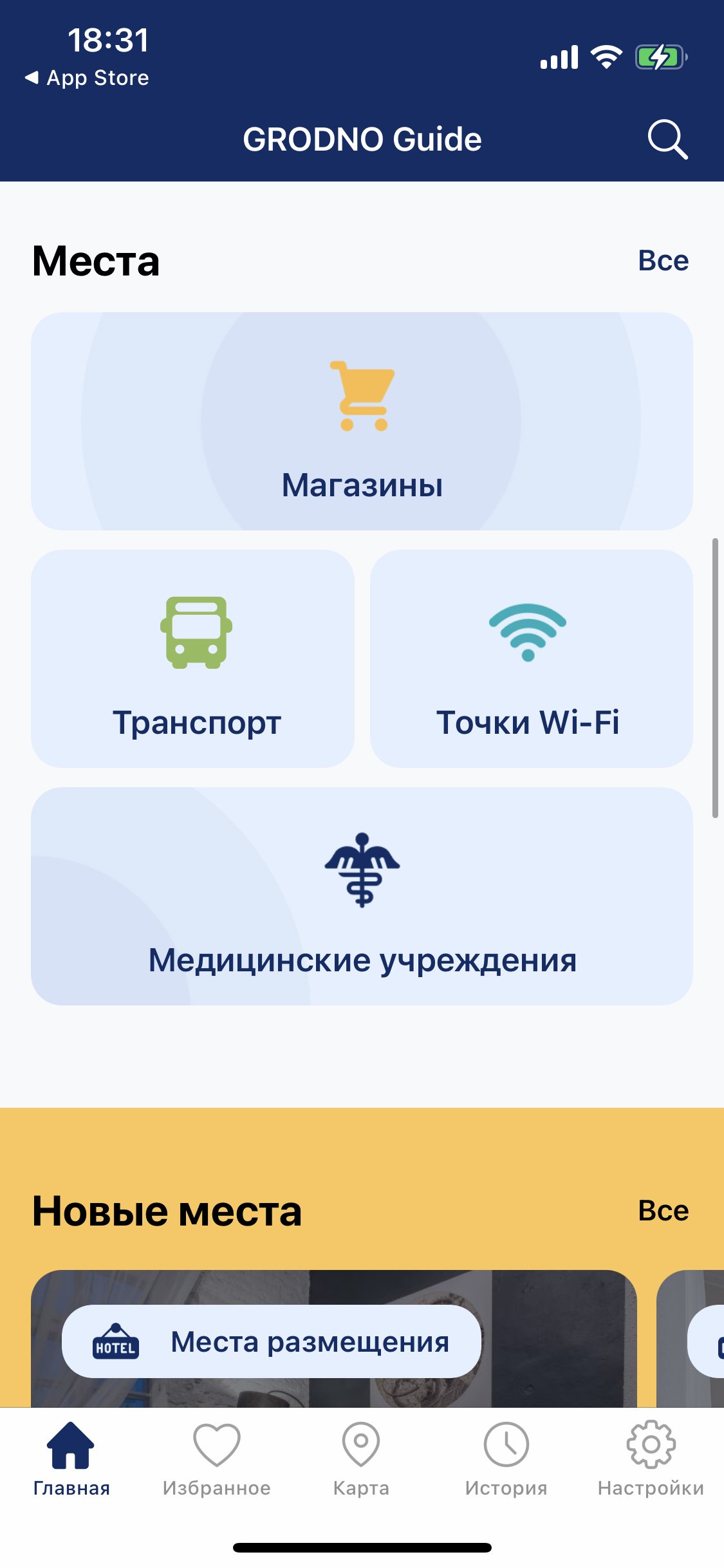 «GRODNO guide» соответствует современным тенденциям и стандартам разработки программного обеспечения, интегрирован с навигационной системой и с метеосервисом, пользователь может строить маршруты, просматривать каталог объектов в разделе «Меню» и сортировать маршрут прогулки.