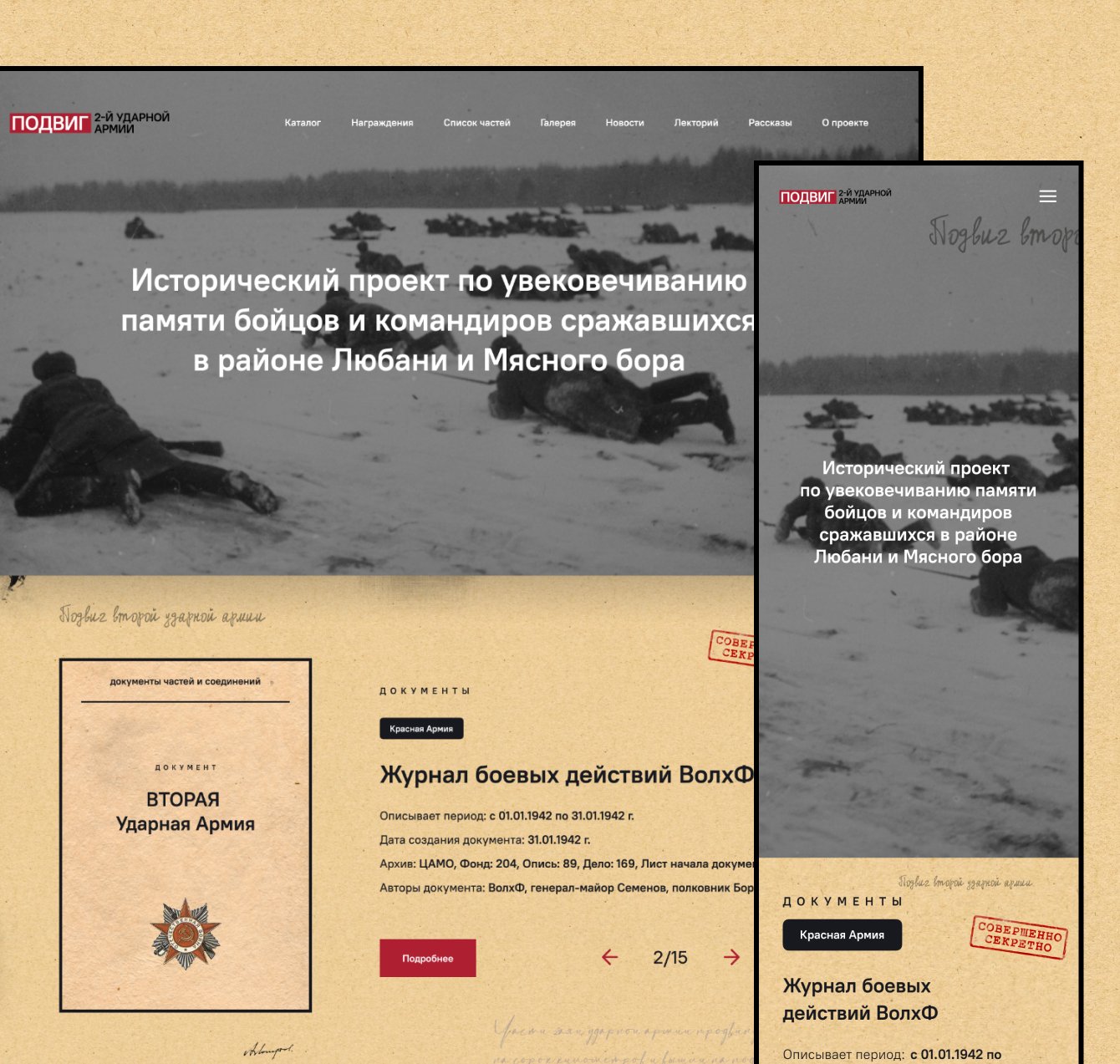 Разработка контент-проекта, посвященного увековечиванию памяти бойцов и командиров, сражавшихся в Любанской операции и у Мясного Бора в январе-июне 1942 года.