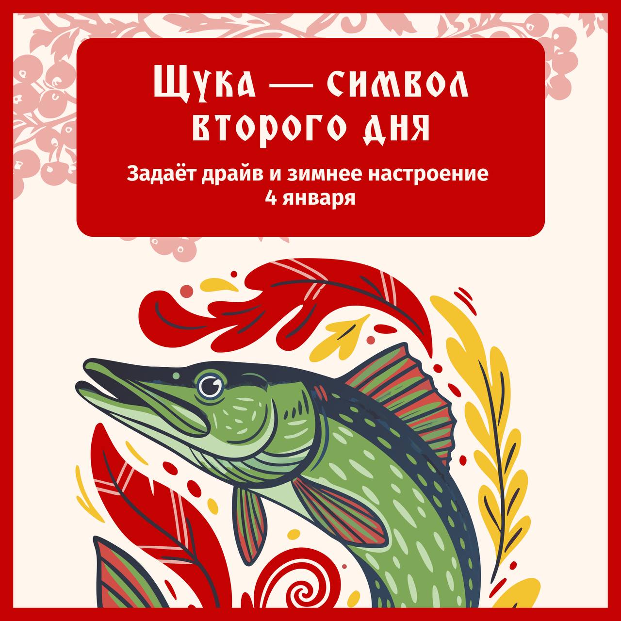 Яркий красный фон — для привлечения внимания, создания праздничного настроения. Красный цвет в русской культуре символизирует энергию, радость, праздник.