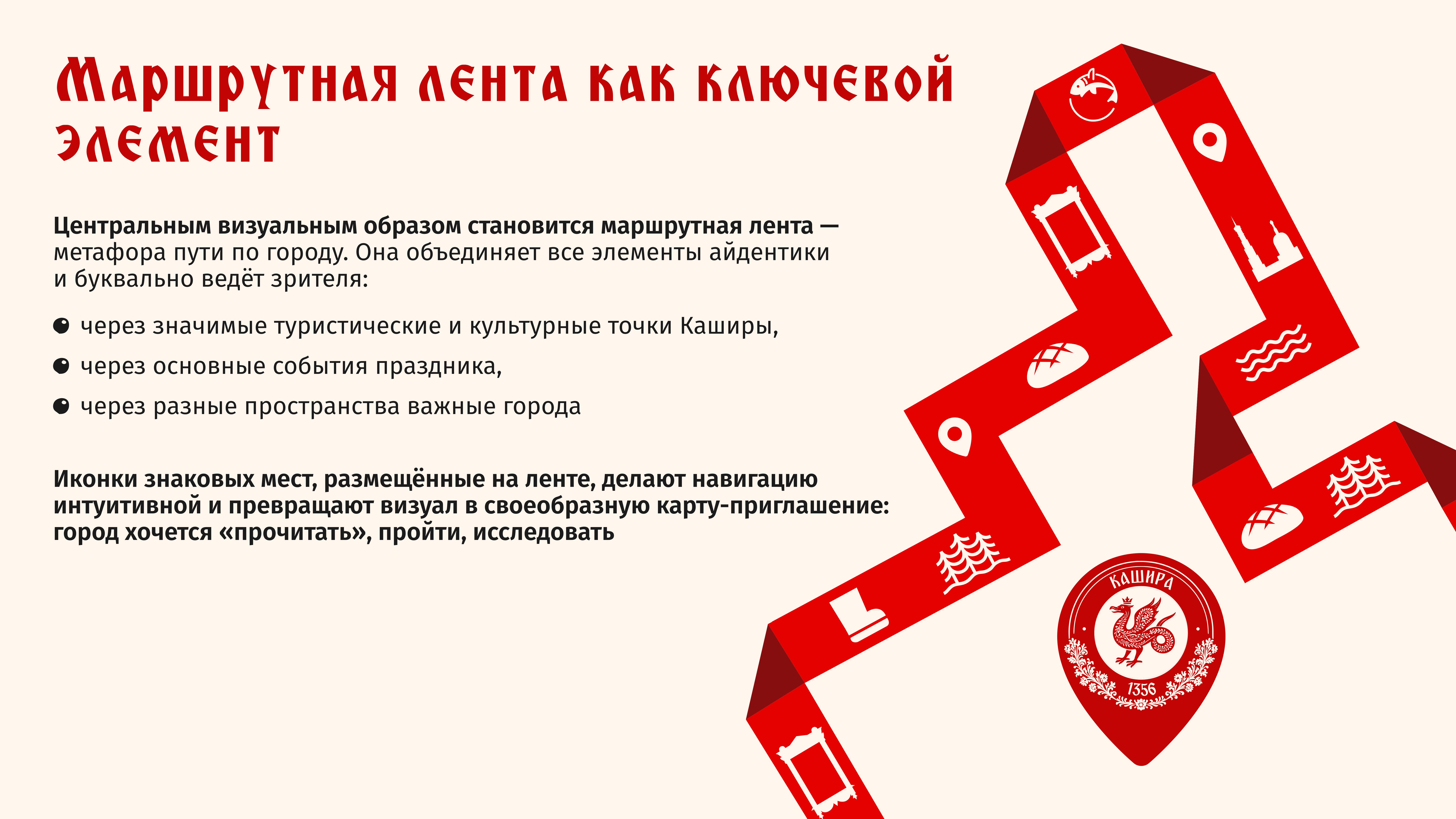Чтобы объединить все эти смыслы в цельный образ, наша команда взялась за великий труд — брендинг территории Кашира.