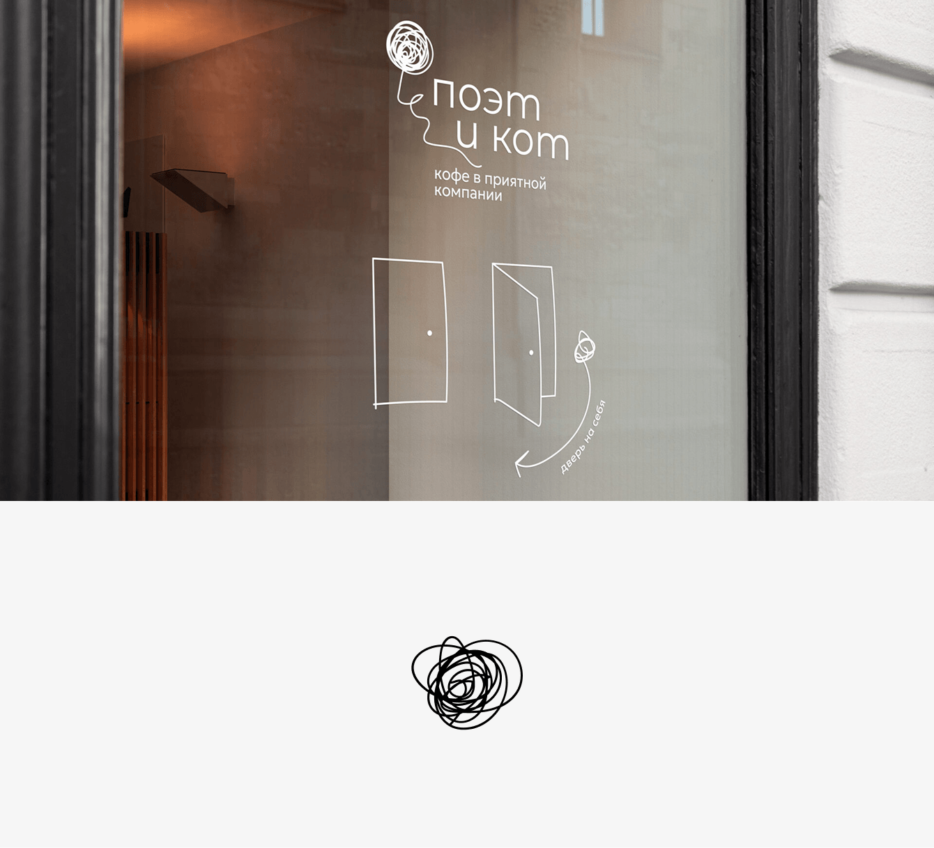 В основе фирменного стиля — движение нити. Из неё складываются слова, рисунки, ассоциации. Это и клубок мыслей, и след пера, и лёгкая игра — чуть поэтичная, чуть кошачья.