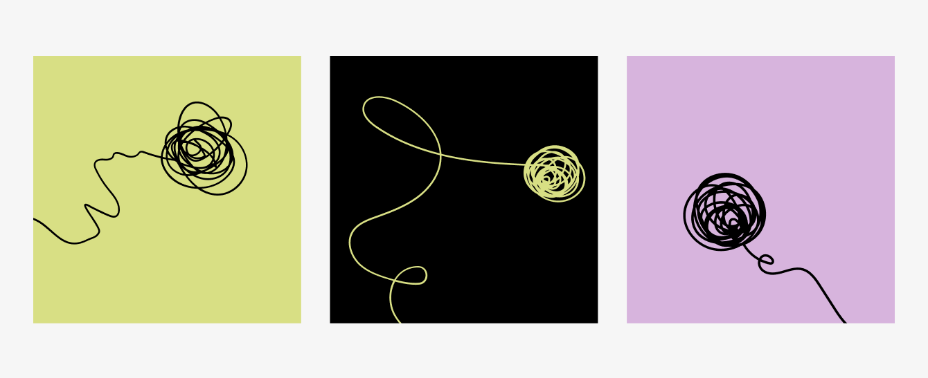 Клубок ниток — главный образ бренда. Это не просто визуальная метафора, а суть всей идеи. Мысли, разговоры, ассоциации — всё переплетается, распутывается, снова завязывается. Клубок — это и то, о чём думаешь, и то, с кем делишься.