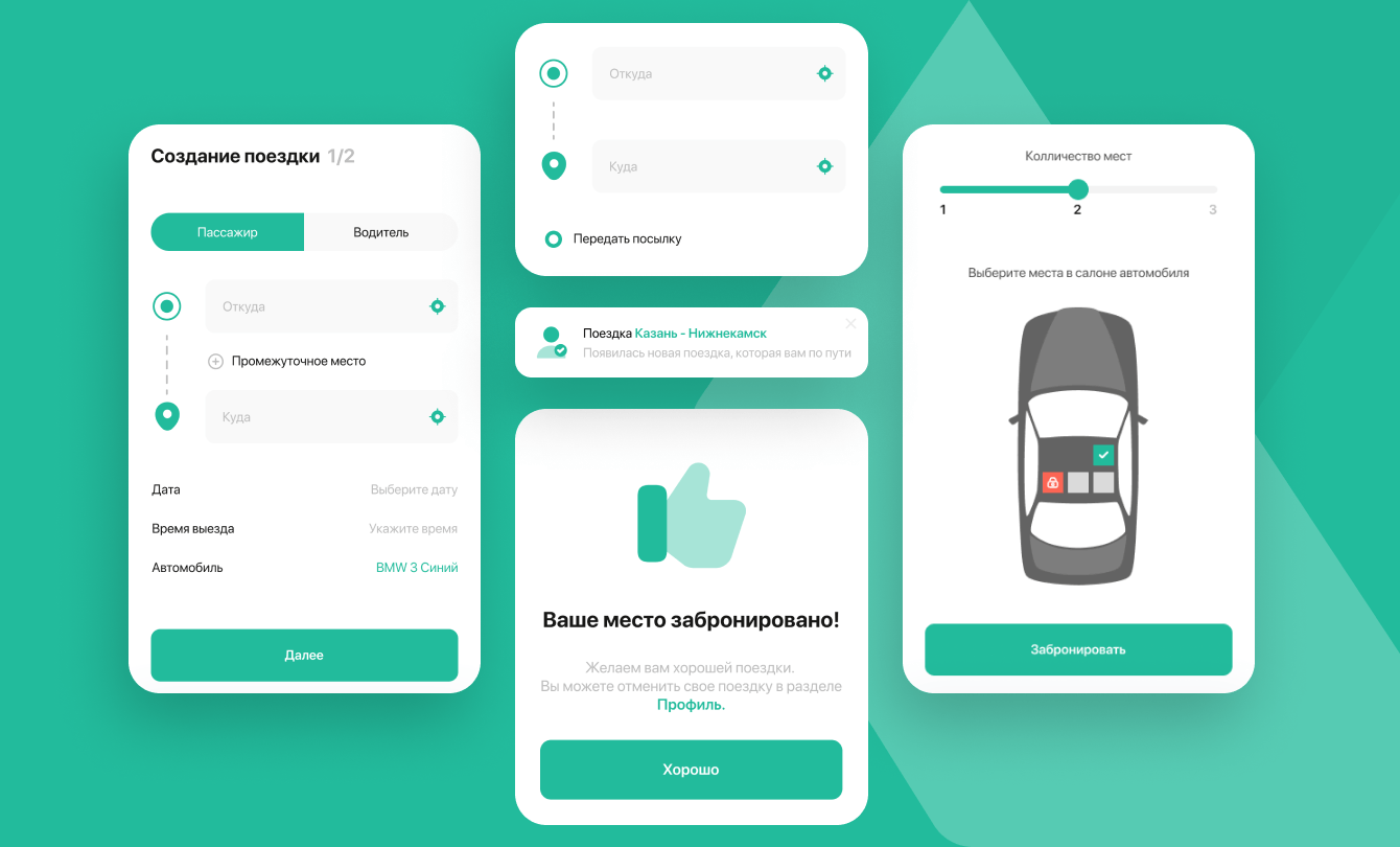 - Есть возможность создание поездки не только водителем, но и пассажиром;