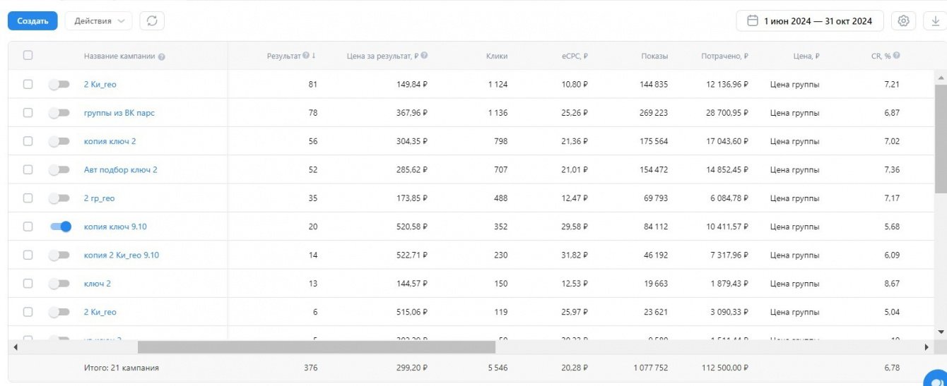 Разработаны структуры РК в Яндекс Директ и VK ADS.