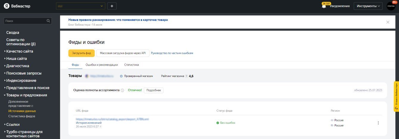 После корректной настройки стоит обновлять фиды и реагировать на изменения. За статусом фида следят в разделе «Товары и предложения» — «Источники данных».