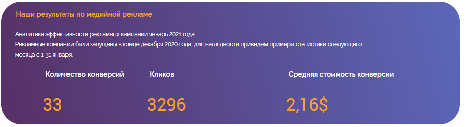 Данные медийные и ретаргетинговые кампании были запущены как дополнительный источник трафика и на них был выделен минимальный бюджет. Несмотря на это, сработали они достаточно эффективно. Получили дополнительно к поисковой рекламе еще 33 конверсии по низкой цене. Заказчик остался доволен проделанной работой.