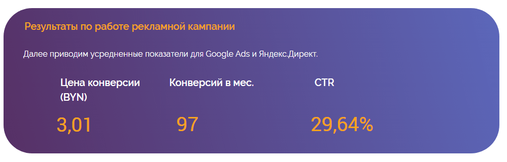 2) Высокий коэффициент конверсии 11,91% в Google и 13.04 в Яндекс.