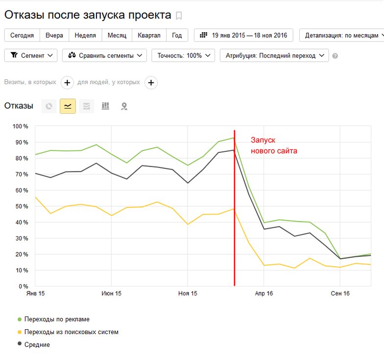 Что немаловажно - отказы по старой неэффективной рекламной компании сократились с 80% до 35% процентов.