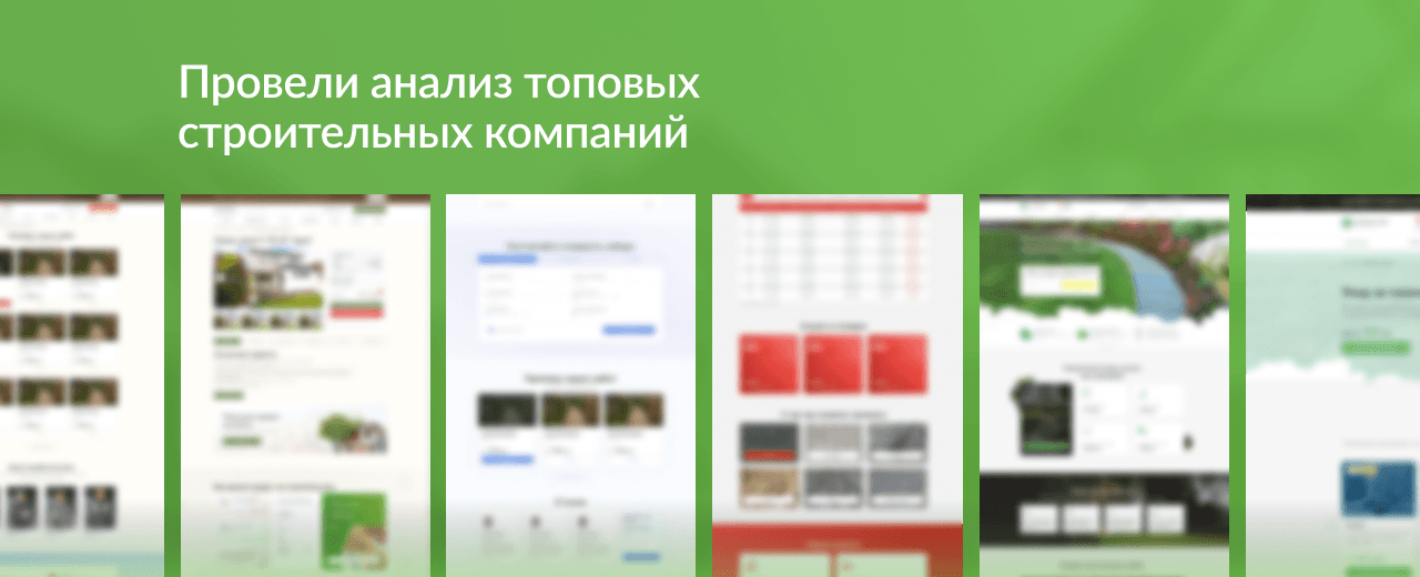 Первым делом мы провели анализ топовых строительных компаний, которые занимаются малоэтажным строительством в Москве, Санкт-Петербурге, Екатеринбурге, Новосибирске и других городах-миллионниках. Основной объект изучения — списки предоставляемых услуг и уникальные торговые предложения конкурентов.