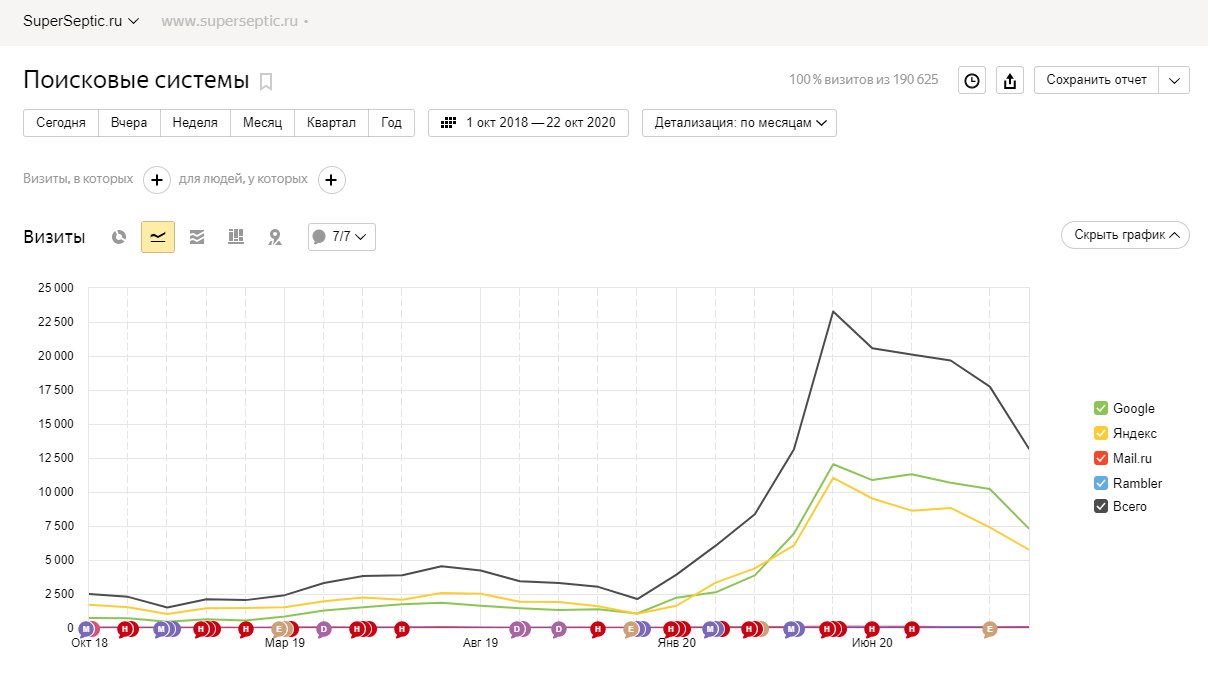 В период с осени 2018 по весну 2020 года производилось изменение стратегии продвижения с технической оптимизации на информационное продвижение и маркетинг.