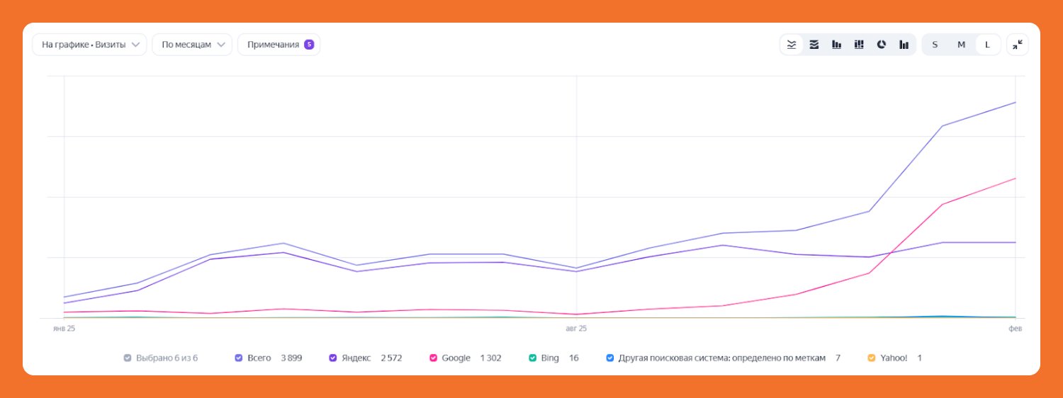 Этот кейс показывает, что рост в поисковом продвижении достигается не за счёт отдельных действий, а благодаря системной работе. Последовательная проработка аналитики, семантики, контента и технического состояния сайта позволяет увеличить трафик, и заложить основу для его роста.