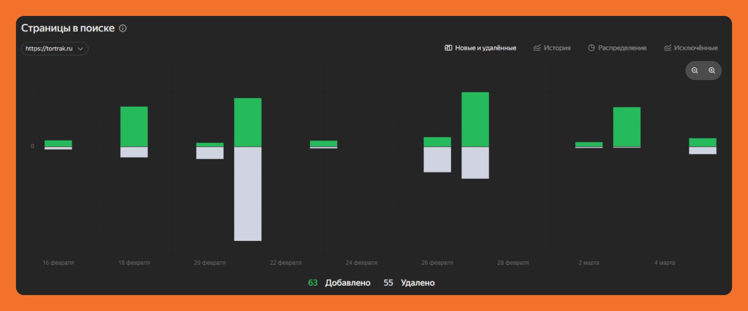 - улучшение индексации сайта. После корректировки технических настроек поисковые системы начали быстрее и корректнее обрабатывать страницы сайта. Это обеспечило более стабильное попадание новых и обновлённых страниц в индекс и создало базу для дальнейшего роста трафика.