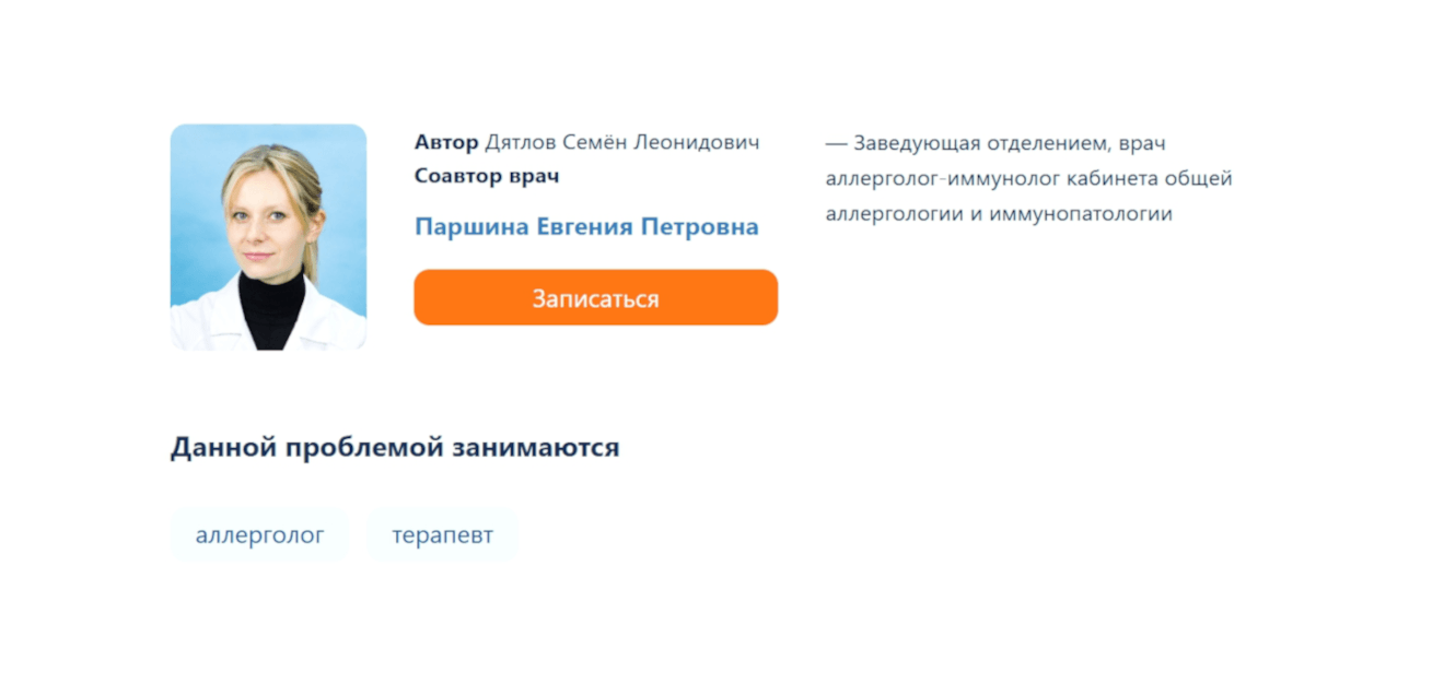 Благодаря внедрению дополнительного блока в шаблон статьи генерируется дополнительный трафик на страницы приёма врачей. Добавленные нами кнопки значительно сокращают путь пользователя, что особенно актуально в тех случаях когда страницей входа на сайте становится статья.